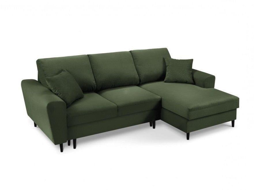 Pravostranný rohový gauč z kordu s funkciou spania KYOTO tmavozelený