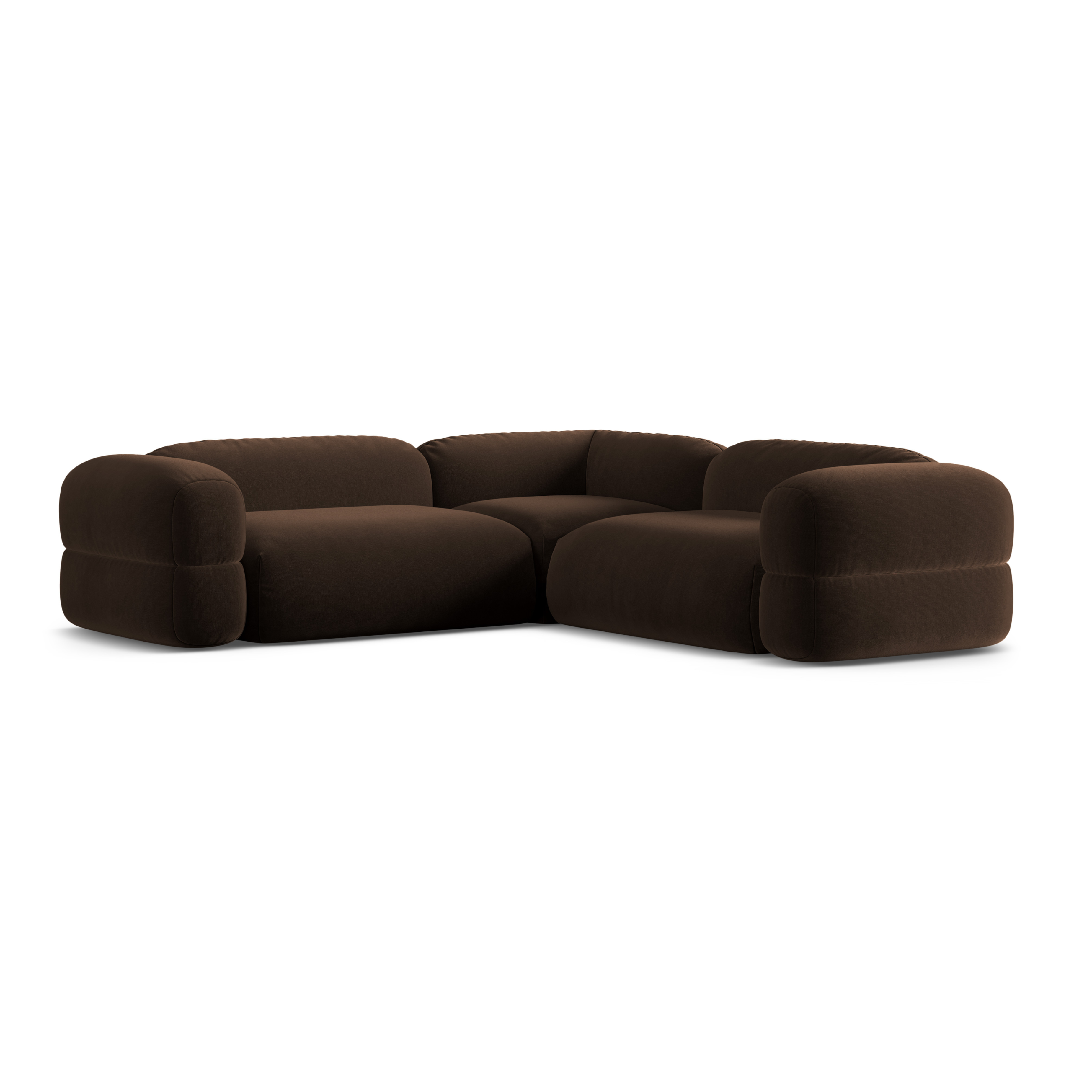Symetrický rohový gauč ROGER čokoládový z aksamitného materiálu
