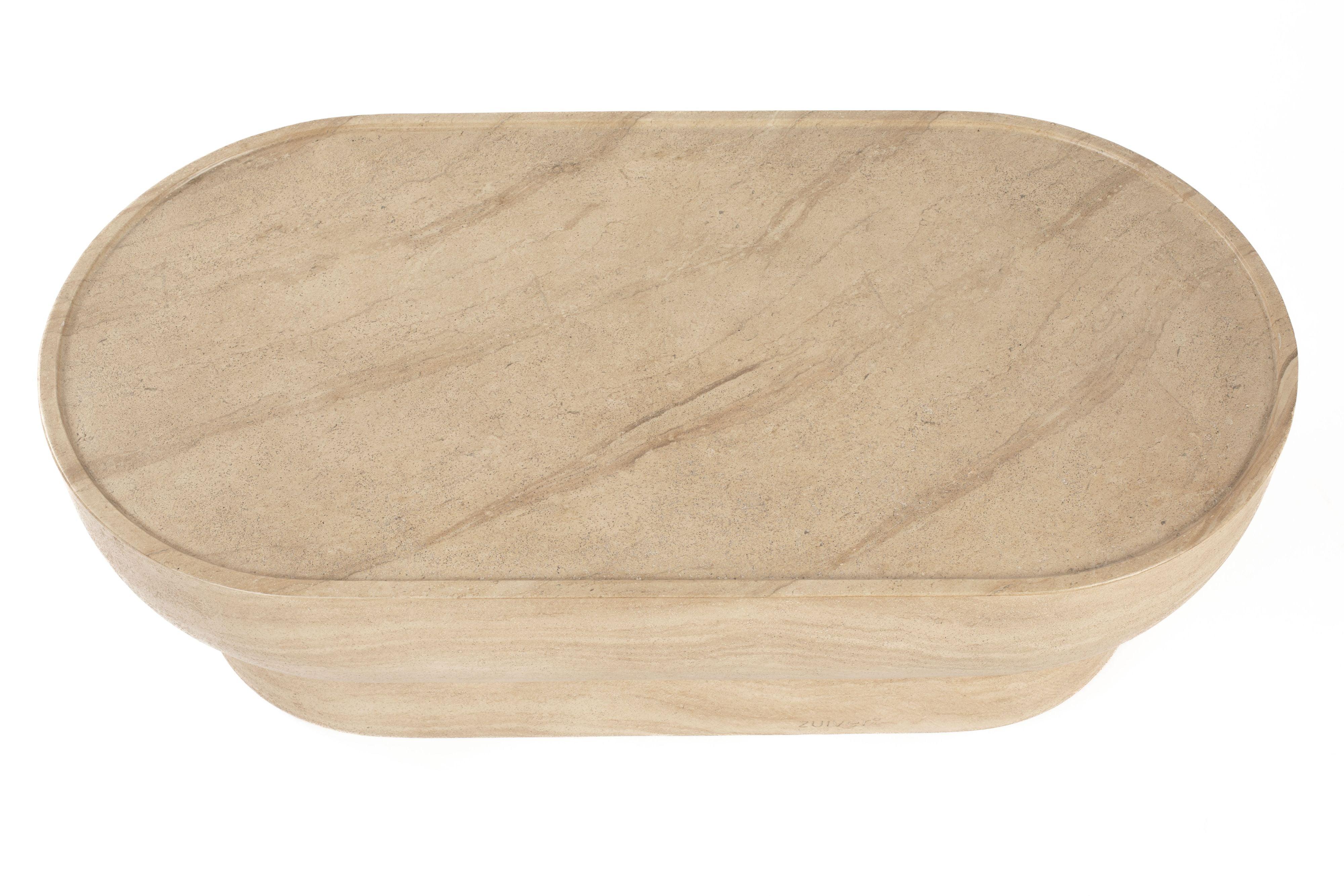 Kávový stolík Noble očarí symetrickým a jemným tvarom. Jednoduché, čisté, prírodné a minimalistické formy stolíkov z kolekcie Noble prinesú elegantný akcent do každej miestnosti. Každý prvok stolíka je jedinečný, čím pridáva interiéru kúsok prírodnej krásy. Stolik je vyrobený z betónu a natretý, aby získal vzhľad travertínu.