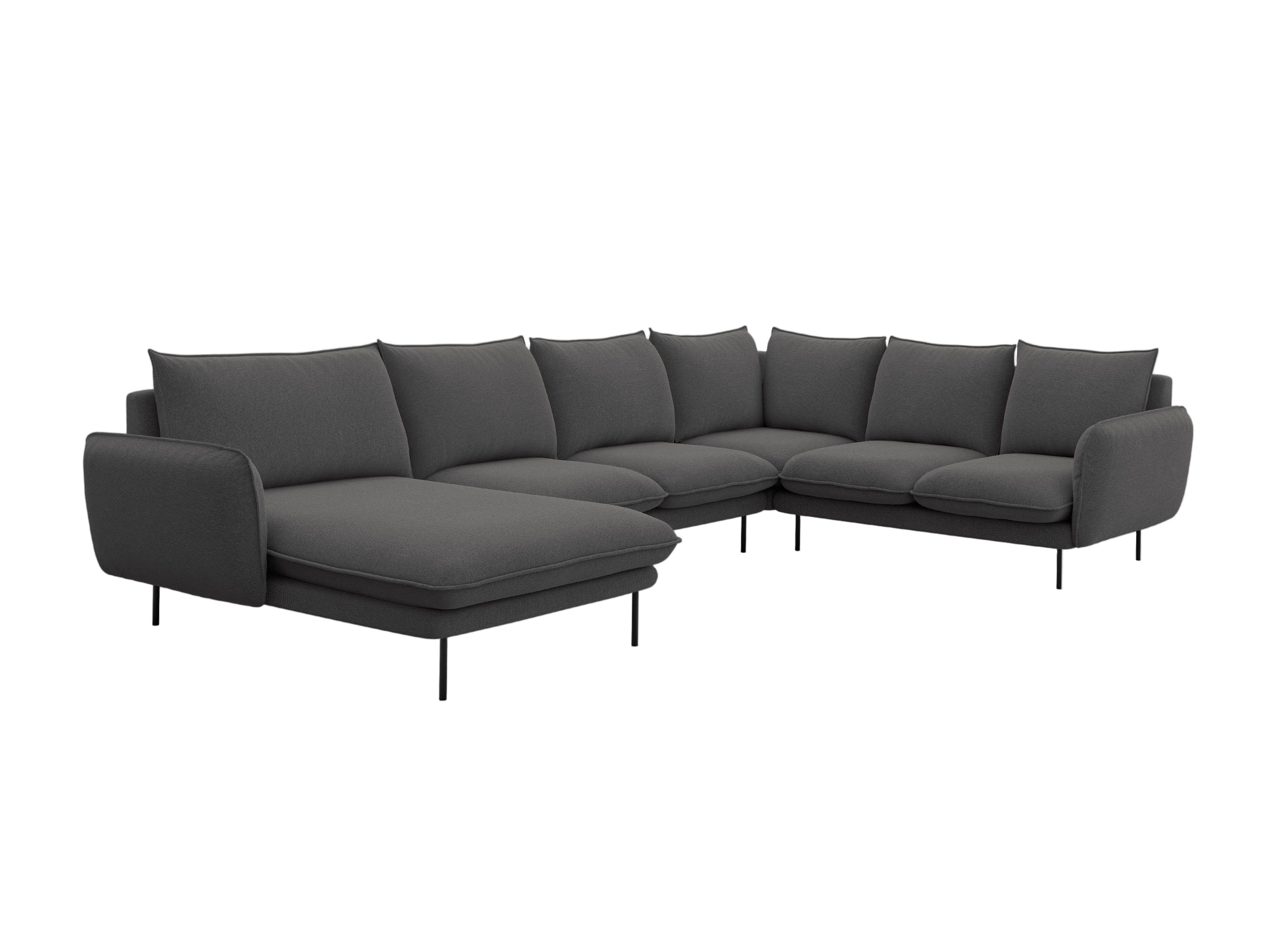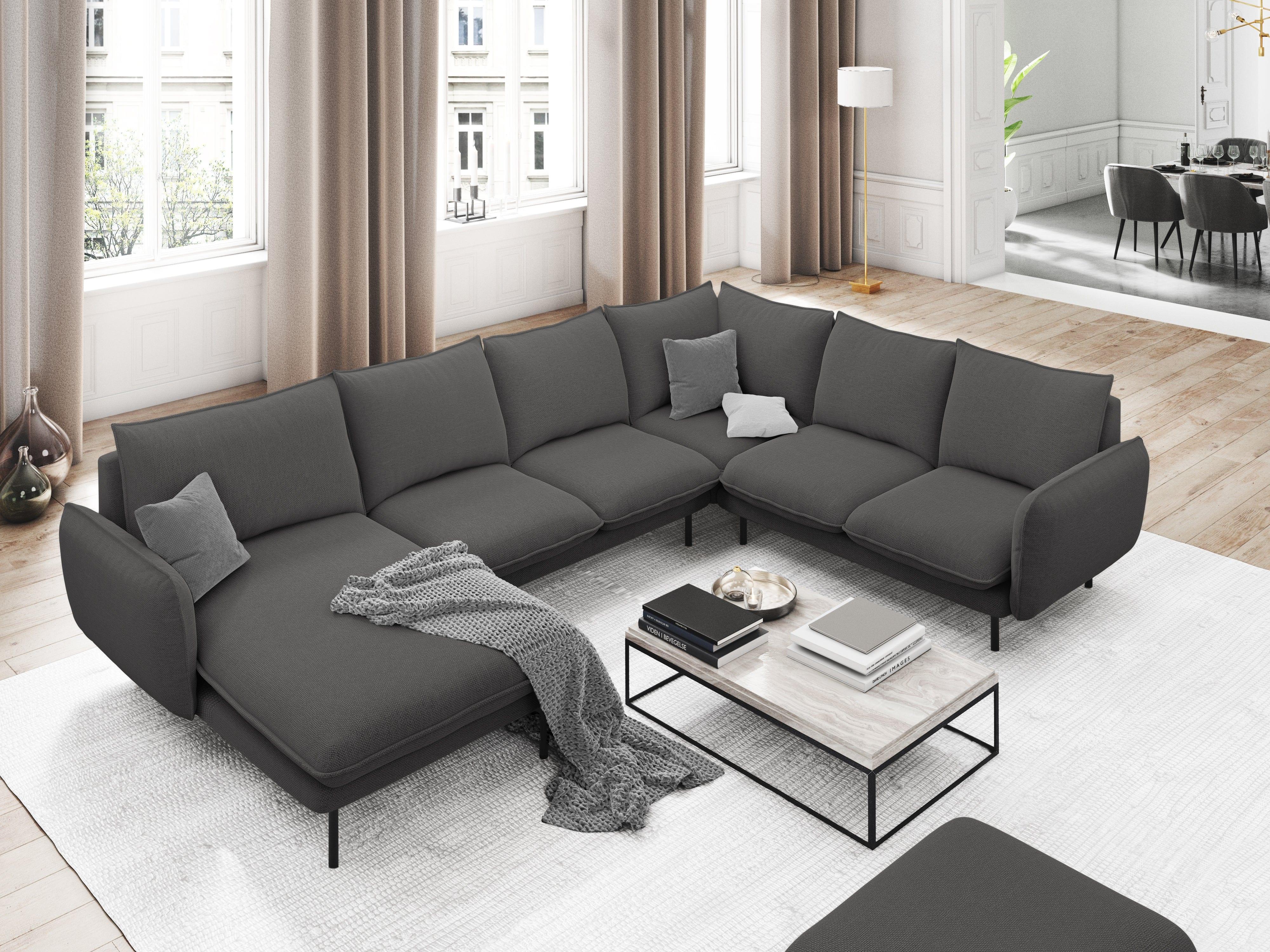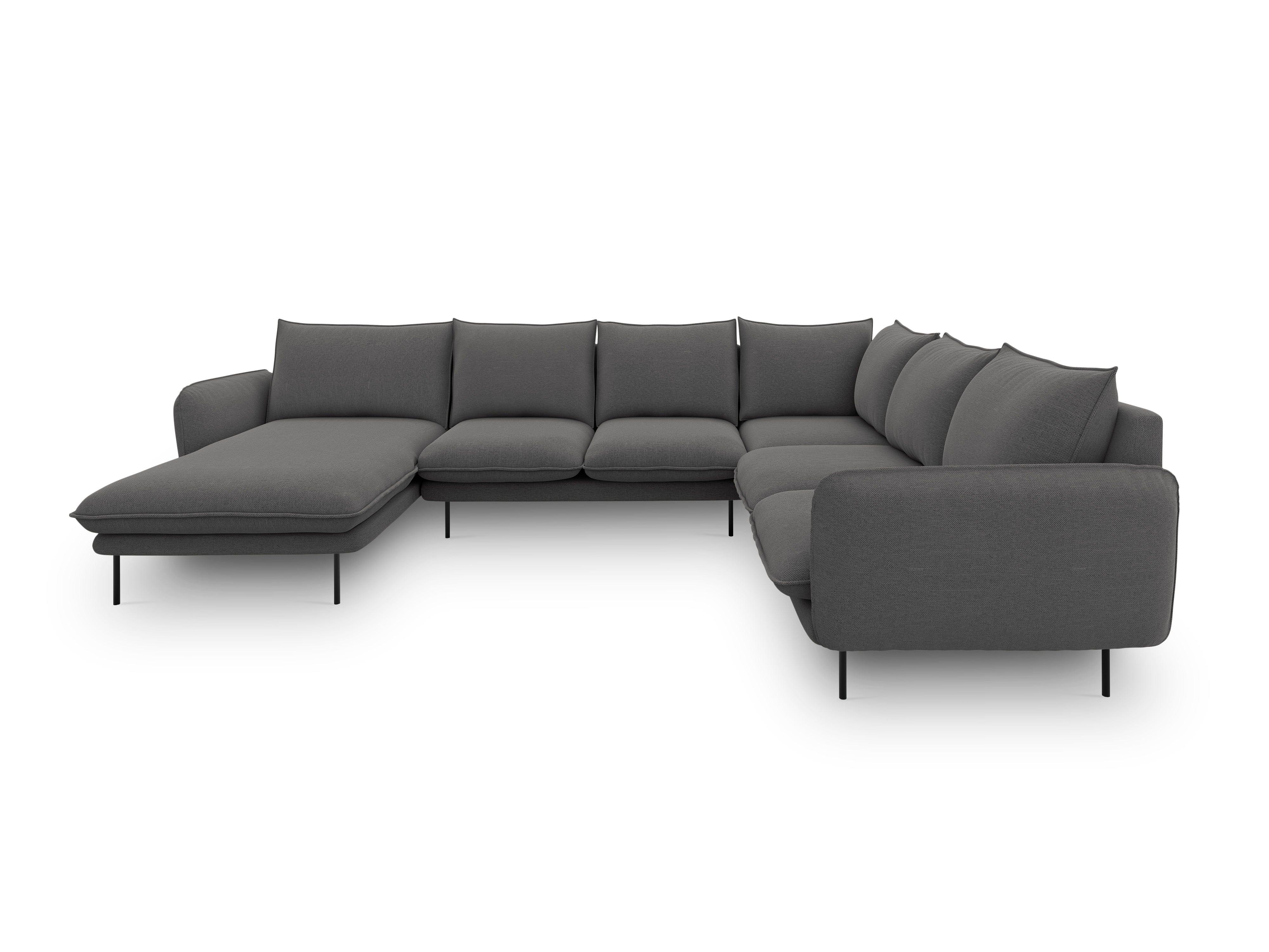 Narożnik panoramiczny prawostronny 7-osobowy VIENNA ciemnoszary szenil z czarną podstawą