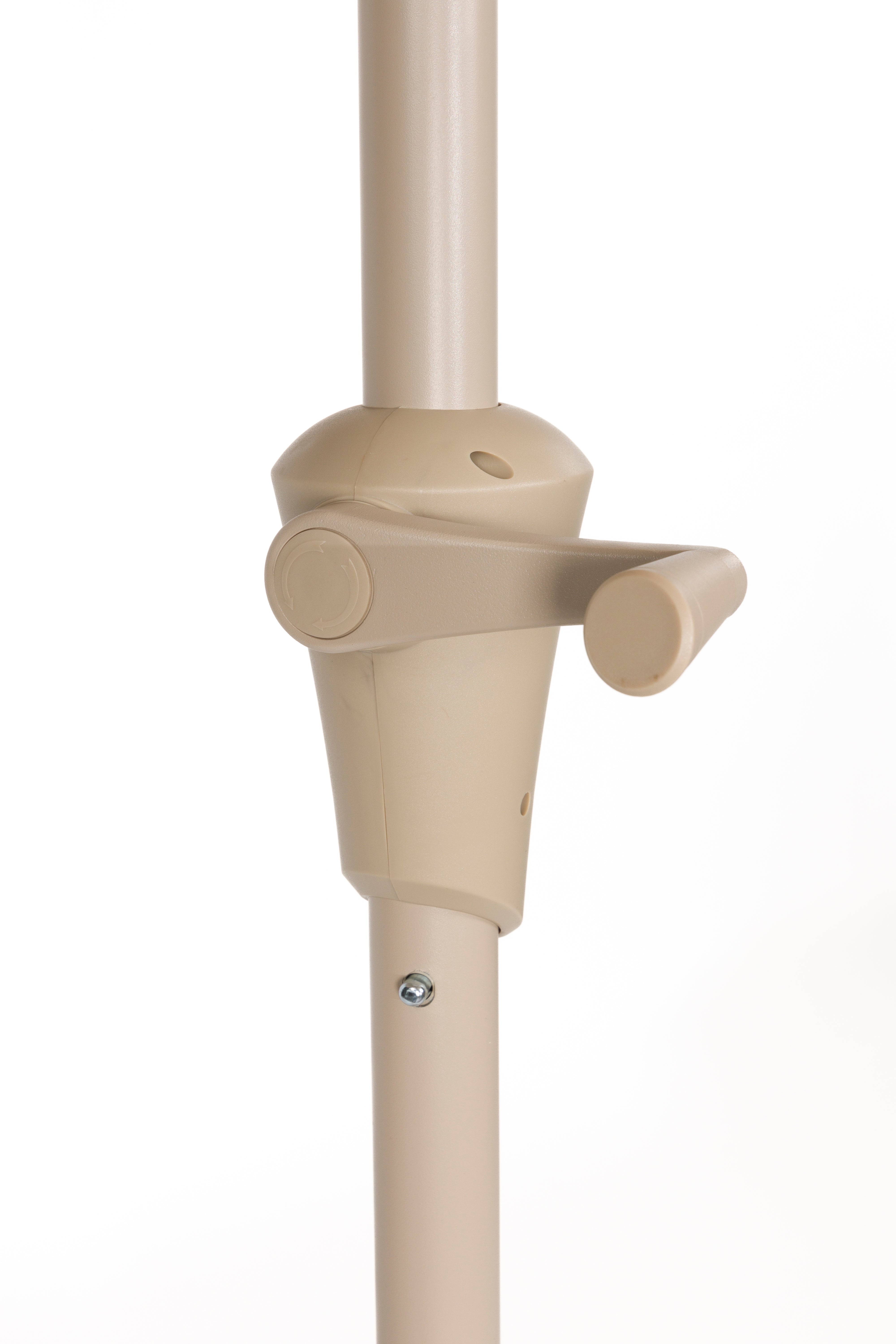 Slnečník je vyrobený z odolného polyesteru a poveternostne odolnej ocele s práškovým nástrekom. K súprave je priložená farebne zladená taška na uskladnenie a stabilná základňa. Pre maximálnu bezpečnosť sa odporúča zaťažiť základňu doskami a zatvoriť slnečník pri vetre s intenzitou 4 alebo vyššou.
