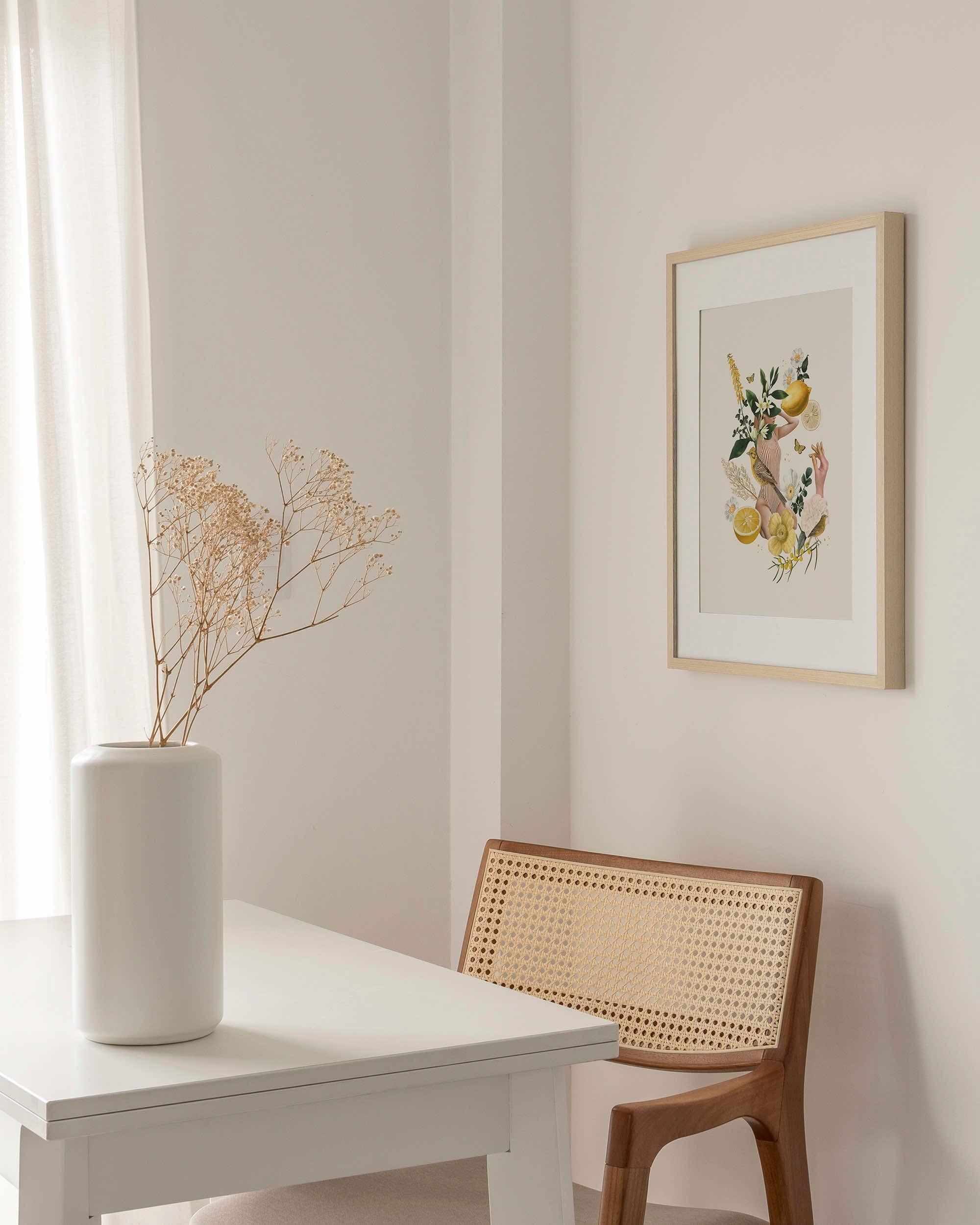 Ilustracja wydrukowana w technologii druku pigmentowego na wysokiej jakości papierze archiwalnym Hanhemuhle o gramaturze 220 g. Jego aksamitnie matowa powierzchnia pięknie podkreśla nasycone barwy kolażu, a jakość druku cechuje się niezwykłą ostrością obrazu.