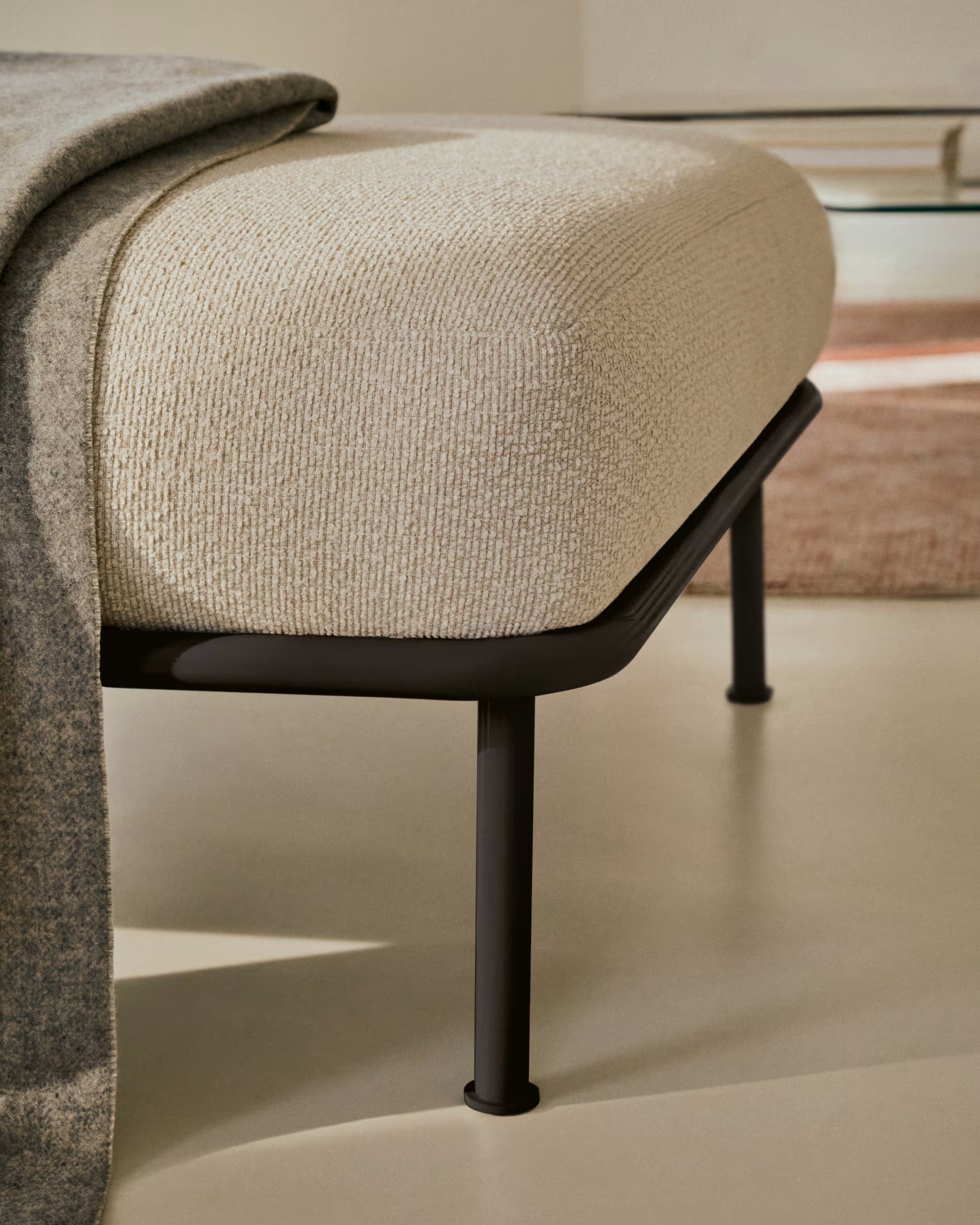Podnožník Aurum je dokonalým doplnkom moderného oddychového priestoru – navrhnutý tak, aby poskytoval komfort, estetiku a funkčnosť v každodennom používaní. Jeho minimalistická forma a čalúnenie v odtieni ecru sa ideálne kombinujú s panoramatickou architektúrou kolekcie Aurum, vytvárajúc harmonický celok. Základňa z natieraného kovu v tmavosivej farbe pridáva kontrast a eleganciu, jemne zdvíhajúc tvar nábytku nad podlahou a posilňujúc jeho moderný charakter.