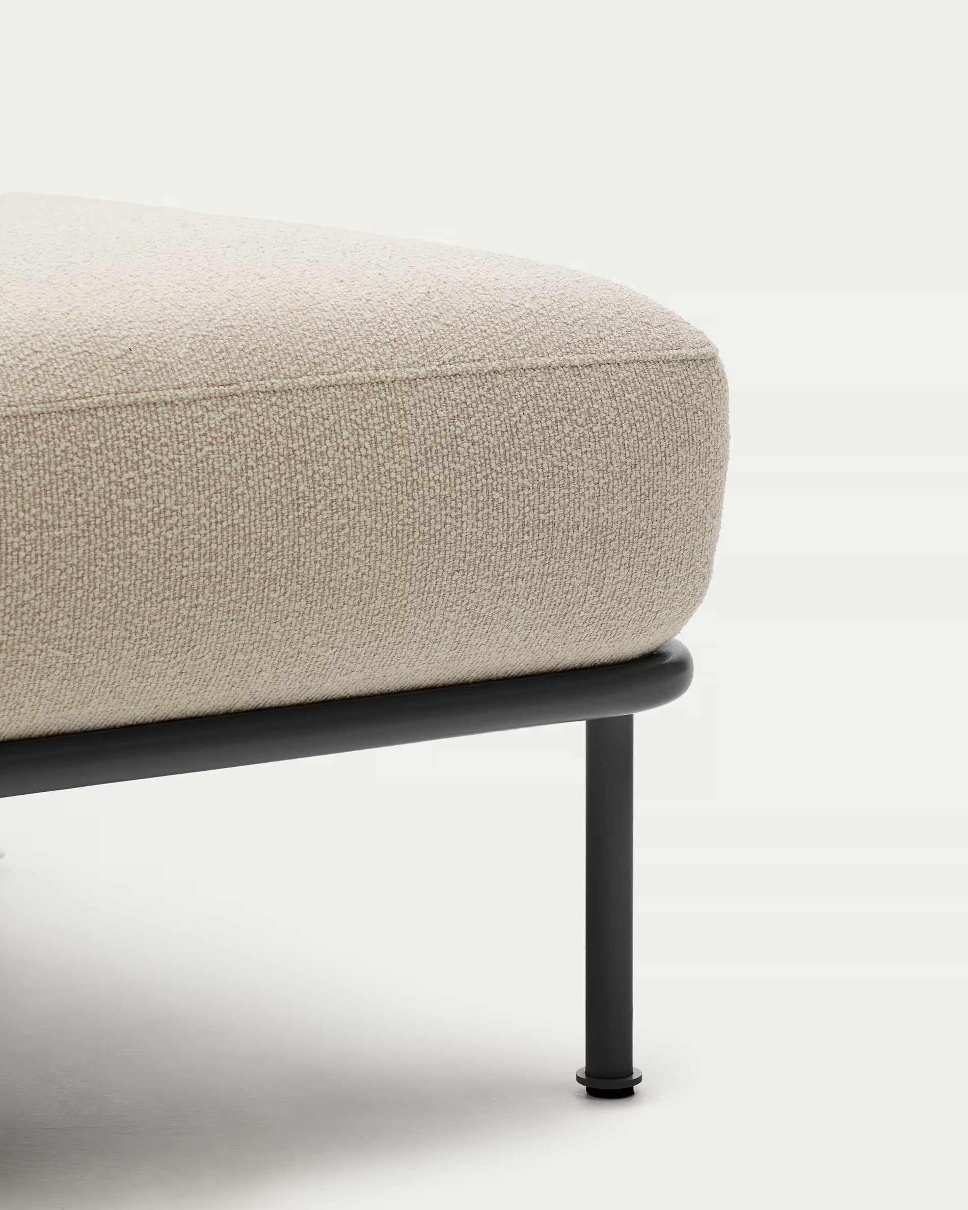 Vnútro podnožníka je vyplnené viacvrstvovou penou s hustotou 28 kg/m³ a 18 kg/m³, čo zaručuje stredne mäkkú, stabilnú oporu a vysokú trvácnosť tvaru. Šenilová tkanina typu bouclé nielenže obklopuje a očaruje mäkkosťou, ale bola tiež vytvorená s ohľadom na každodenné používanie v domácnostiach so zvieratami – je odolná voči poškriabaniu, škvrnám a ľahko sa čistí, pričom snímateľný poťah umožňuje bezproblémovú údržbu.