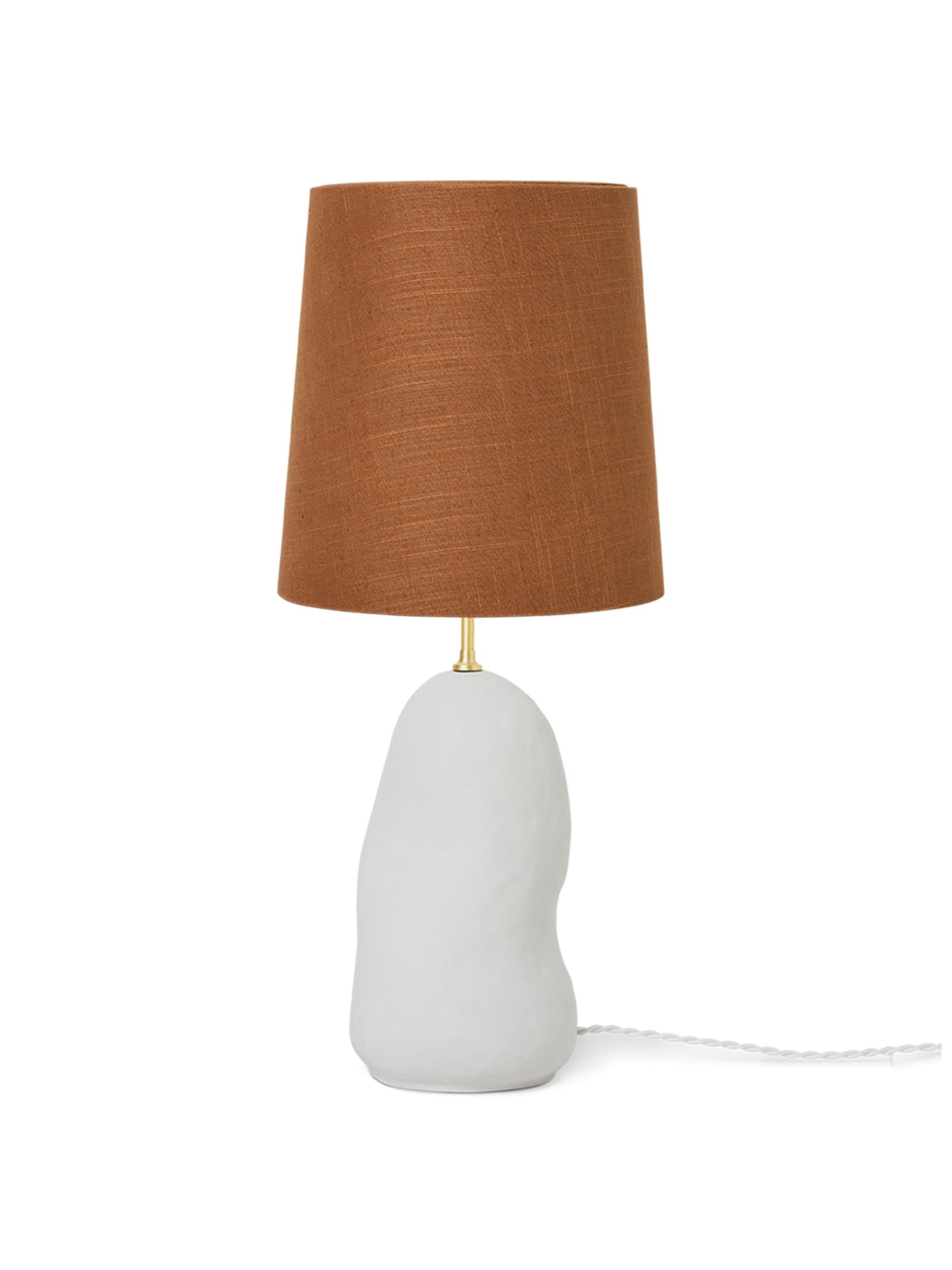 Stolová lampa zo série Hebe v strednej veľkosti je kombináciou odvážneho dizajnu a jemnej elegancie. Ručne tvarovaná základňa s plynulými, organickými líniami inšpirovanými prírodou dodáva projektu ženský, sochársky charakter. Svetlá, matná keramika s drsným povrchom vnáša do interiéru pokoj a harmóniu.