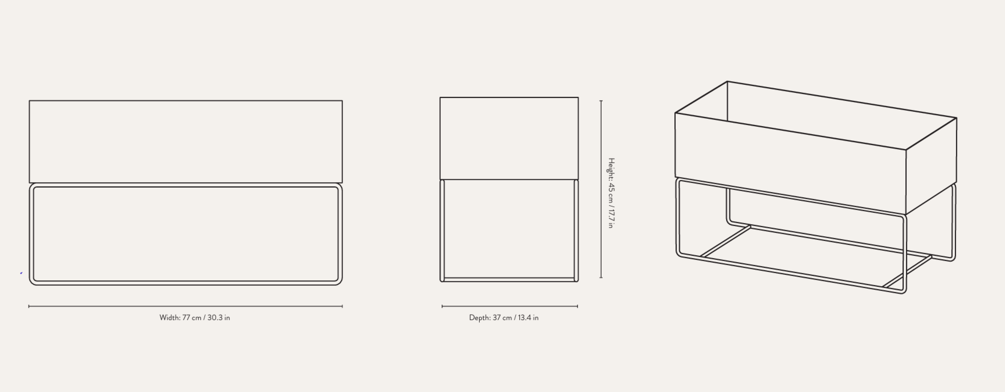 Veľká, nízka a hlboká kvetináč Plant Box vyrobená z práškovo lakovanej ocele je ideálnym riešením na uskladnenie rastlín, ale rovnako dobre poslúži aj na uskladnenie každodenných drobností – od časopisov a kníh po hračky či kancelárske potreby. Umiestnená na štíhlej, ale stabilnej ráme, nadčasový dizajn v klasickej béžovej farbe sa dokonale hodí do každého interiéru. Môžete ju tiež používať s zodpovedajúcim vrchnákom, čím vytvoríte ďalší užitočný priestor.