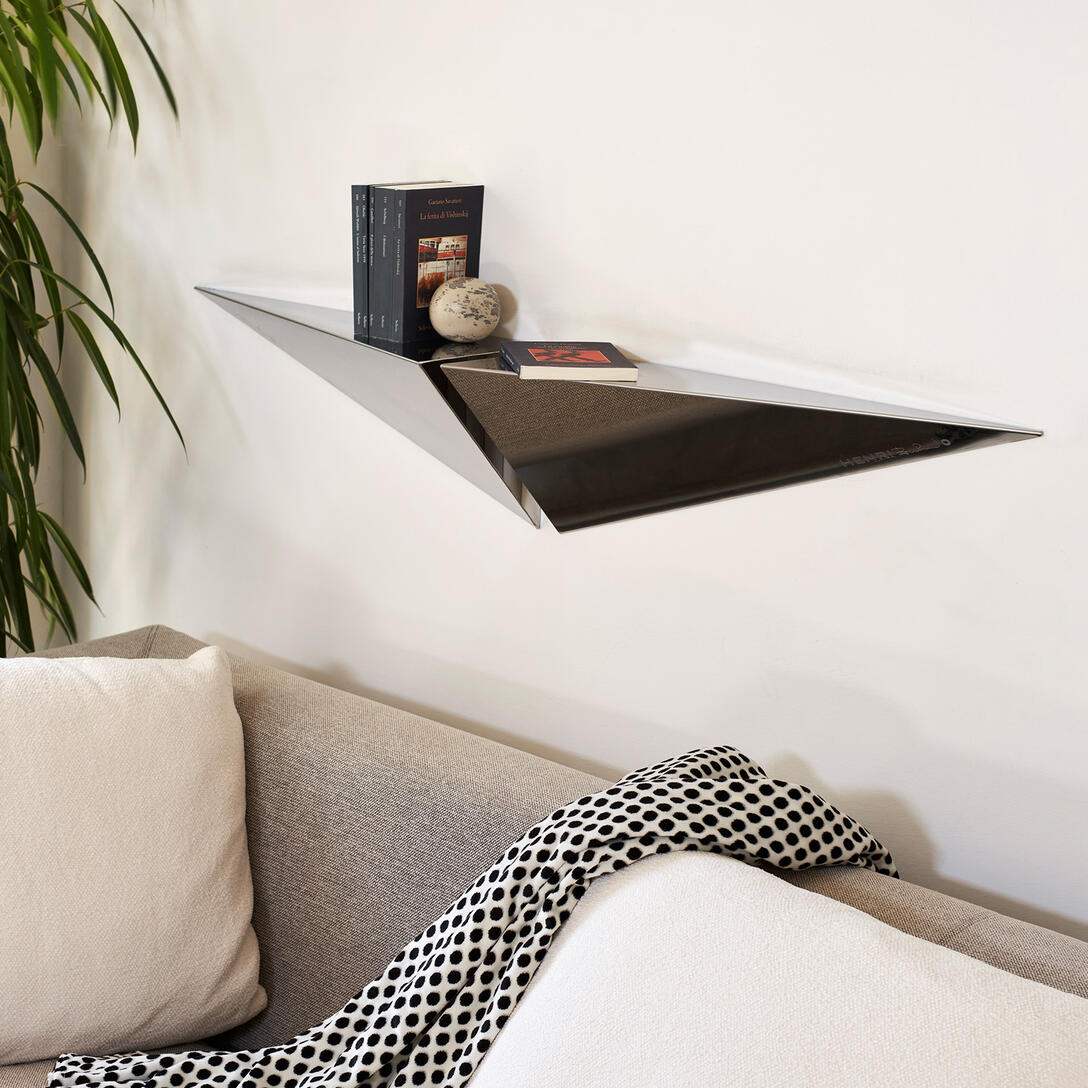 Stenná polica Henri je výnimočným príkladom moderného dizajnu s nádychom avantgardy. Navrhnutá Brunom Rainaldim, vyniká netypickým, trojuholníkovým tvarom, ktorý sa ľahko prispôsobí náročným priestorom — rohom, nikám, ako aj stenám v kúpeľni, predsieni, obývačke či spálni. Jej minimalistická forma a povrchová úprava z leštenej nehrdzavejúcej ocele dodávajú interiérom eleganciu a skvele ladia ako s moderným, tak aj s klasickým zariadením.