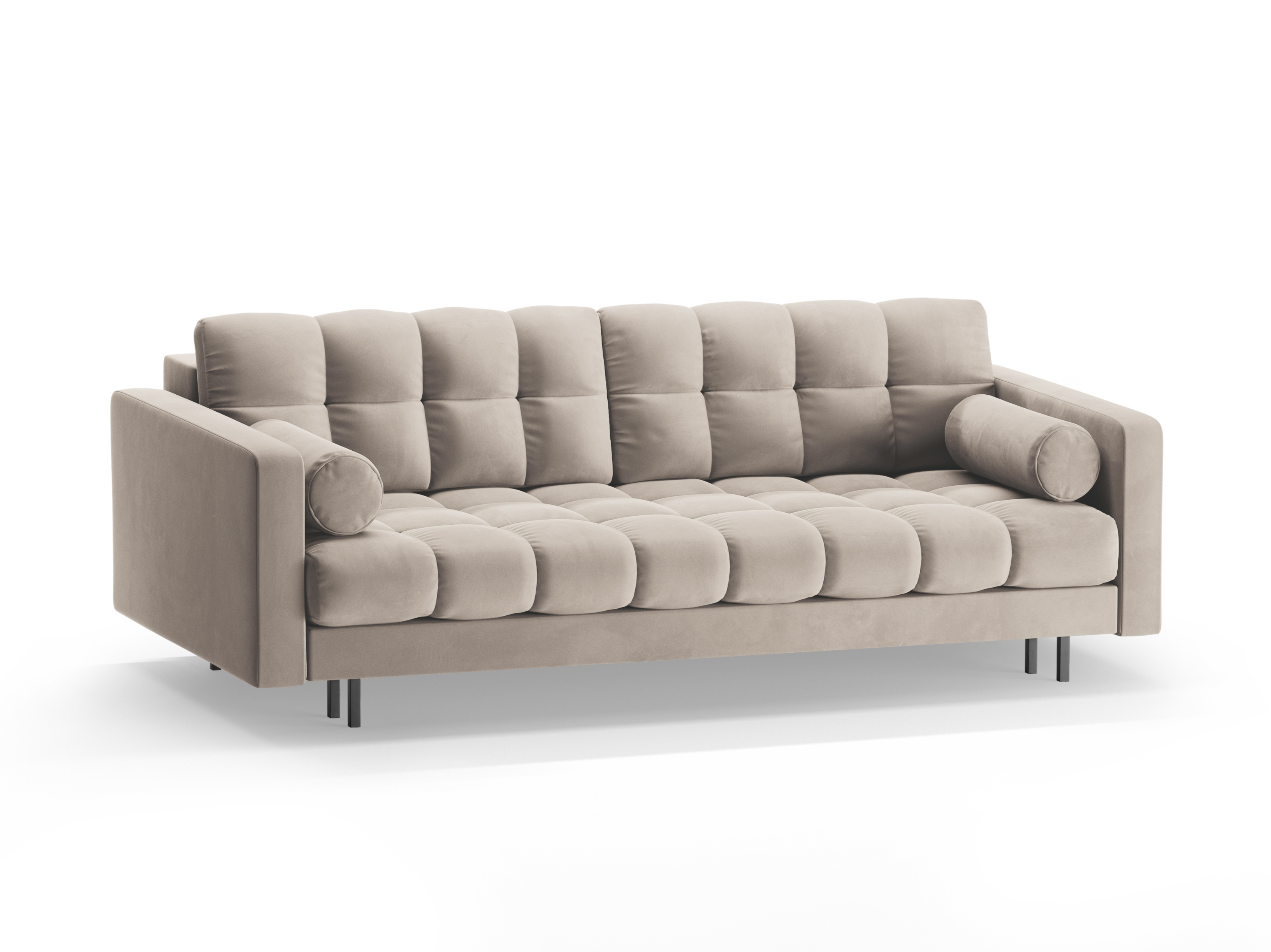 Sofa z jemného velúru pre 3 osoby s funkciou spania BALI béžová s čiernym podstavcom