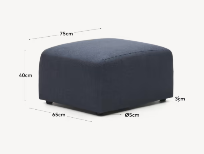 Modrý puf Neom sa skvele hodí do konceptu kolekcie, umožňujúc jednoduché spájanie s inými modulmi bez potreby zložitých montážnych zásahov. Jej univerzálny dizajn zabezpečuje, že puf môže byť využívaný ako dodatočné sedenie, podnožka, alebo dokonca kávový stolík, čím pridáva flexibilitu do aranžovania priestoru.