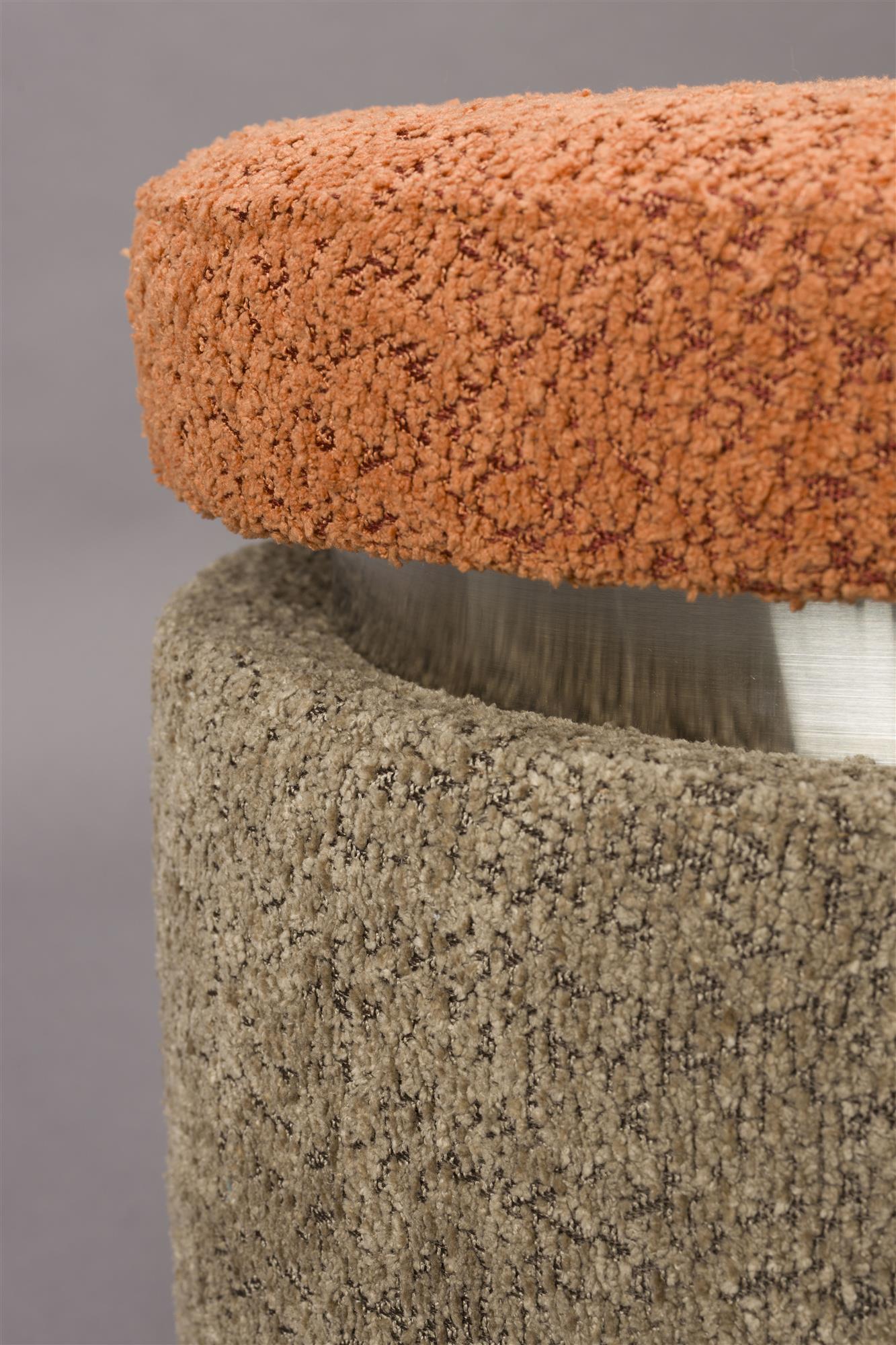 Puf Sen je spojenie tepla a elegancie, ktoré do interiéru vnáša rafinovanú atmosféru. Hoci je malý, jeho pozornosť priťahujúci dizajn z neho robí výnimočný dekoratívny akcent. Puf je luxusne čalúnený mäkkou tkaninou bouclé, ktorá láka na dotyk a dodáva mu útulný charakter.