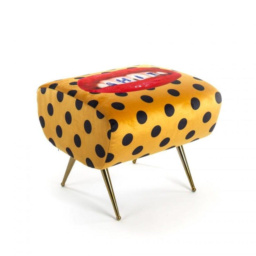 Dizajnový puf v štýle 50. rokov od talianskeho kráľa avantgardy — Seletti, ktorý otvorí dvere do iného, surrealistického rozmeru a dodá interiéru jedinečný charakter. Čalúnenie v výrazných, dynamických farbách a mierne kontroverzný koláž vytvárajú originálne umelecké dielo.