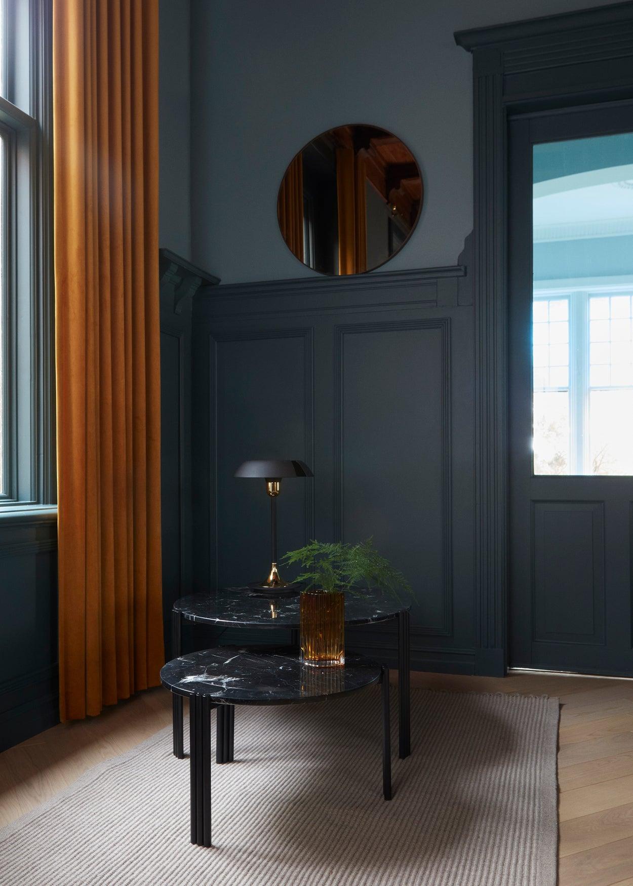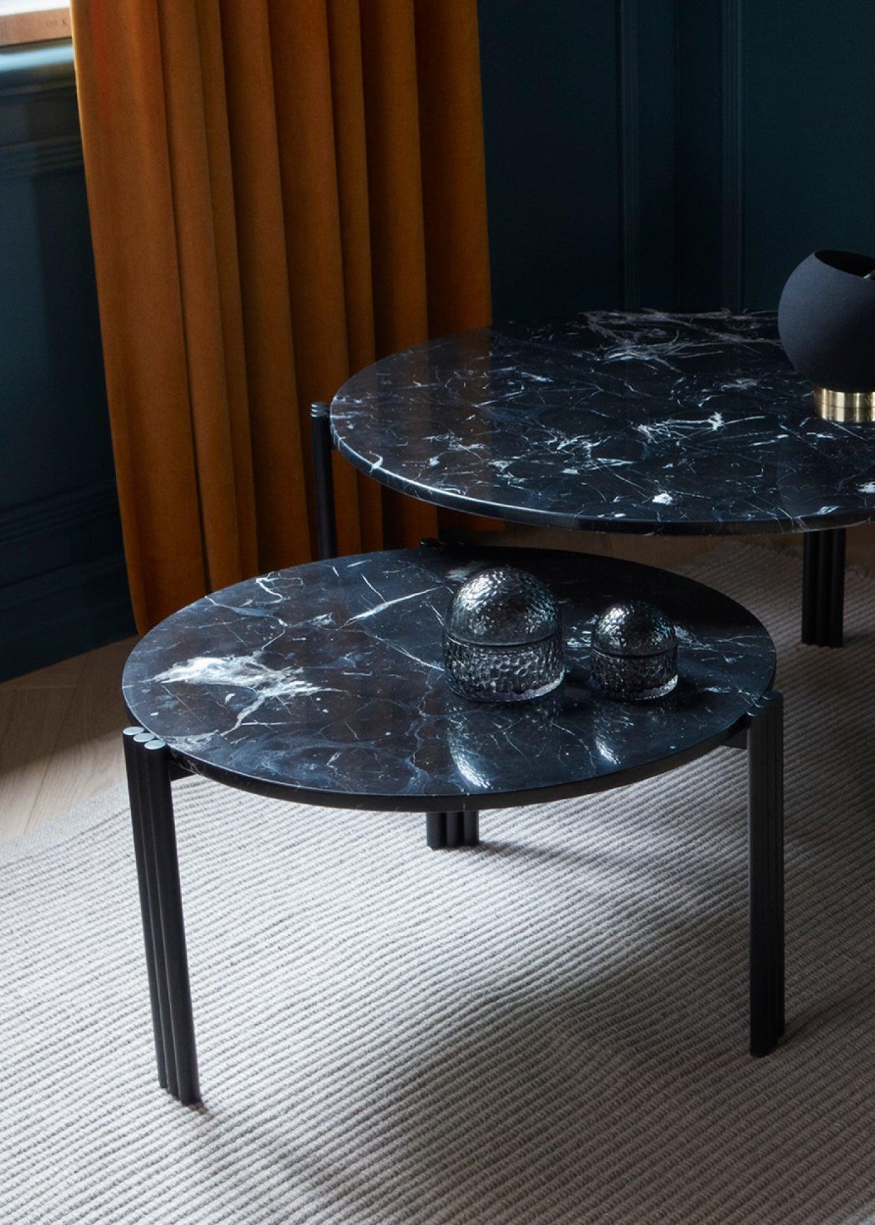 Kávový stolík SINO čierny mramor s čiernym podstavcom