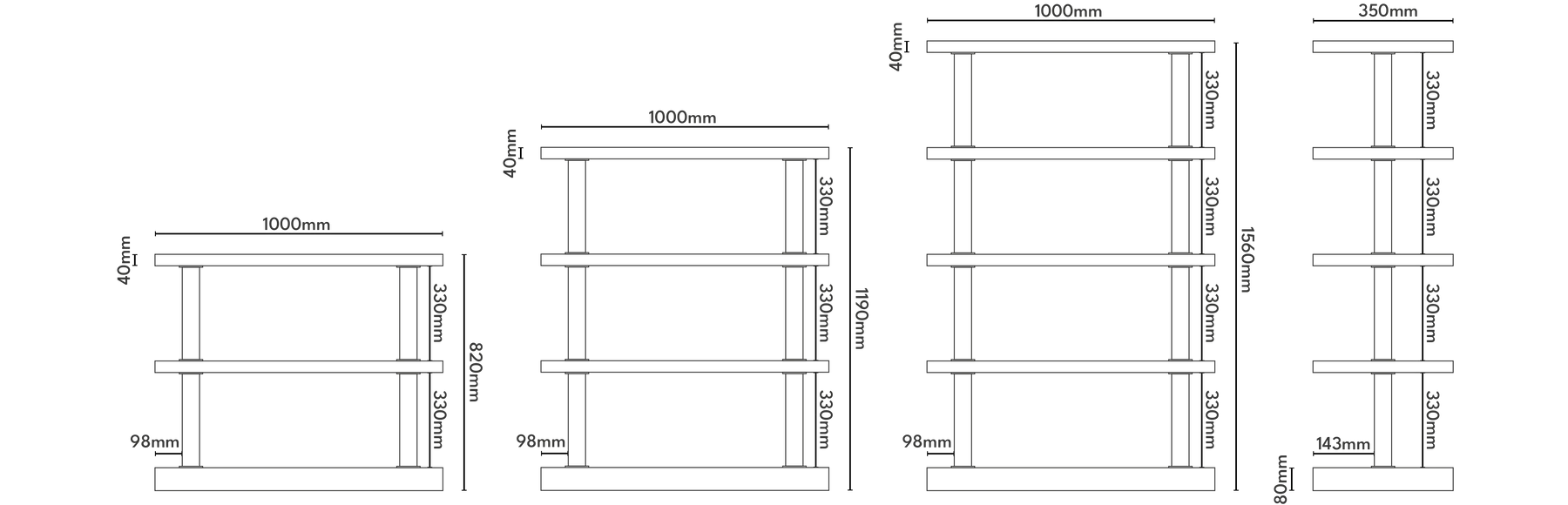 Wysokość: 82 / 119 / 156 cm