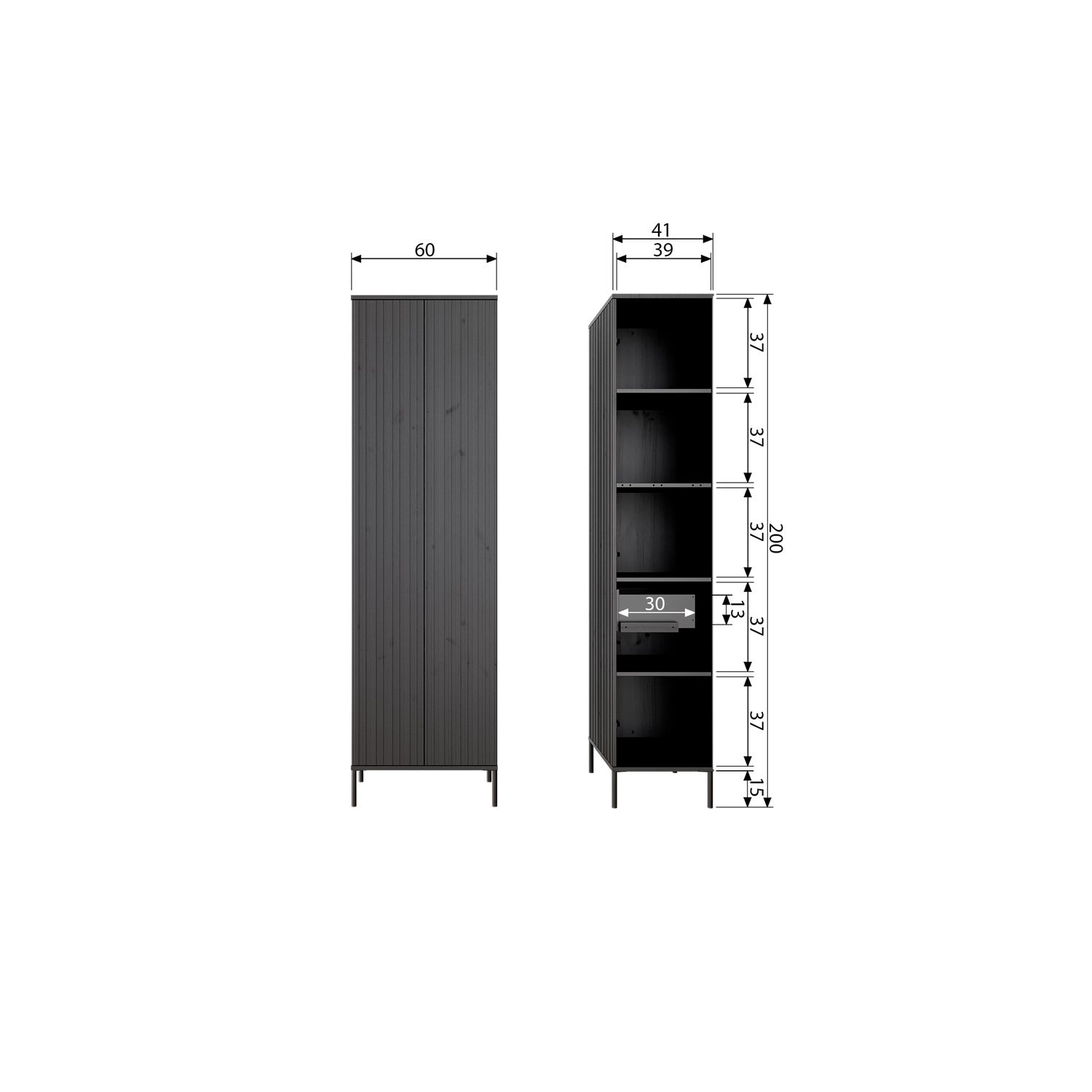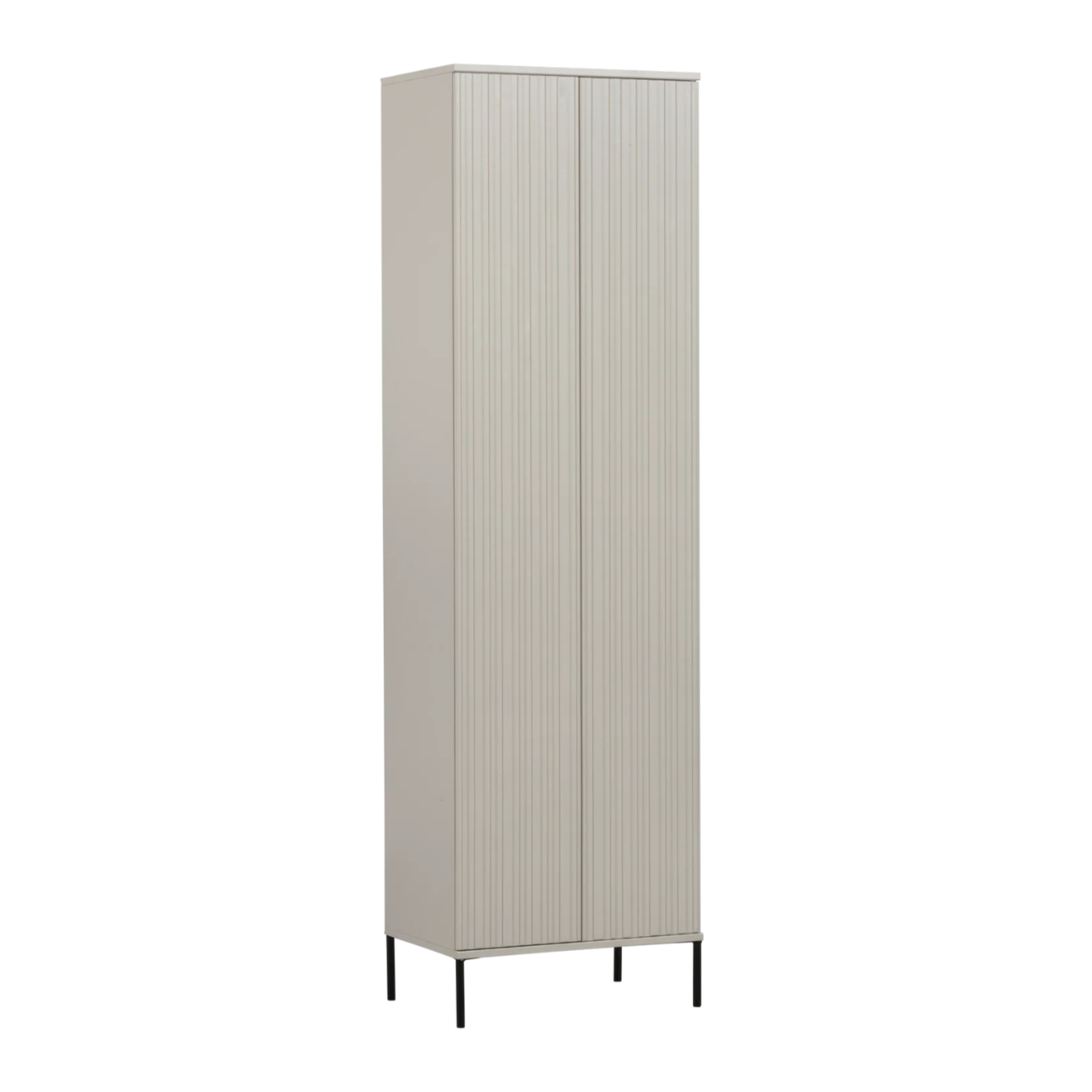 Regál New Gravure je ideálny návrh pre tých, ktorí hľadajú elegantný a funkčný nábytok na uskladnenie. Vďaka svojej výške a premyslenej konštrukcii s dvoma dverami a praktickou zásuvkou ponúka veľa miesta na usporiadanie predmetov v obývacej izbe, jedálni alebo pracovni. Farba Dust v kombinácii s čiernym interiérom a kovovými nohami vytvára moderný, a zároveň nadčasový vzhľad, ktorý sa skvele hodí do rôznych aranžmánov interiérov.