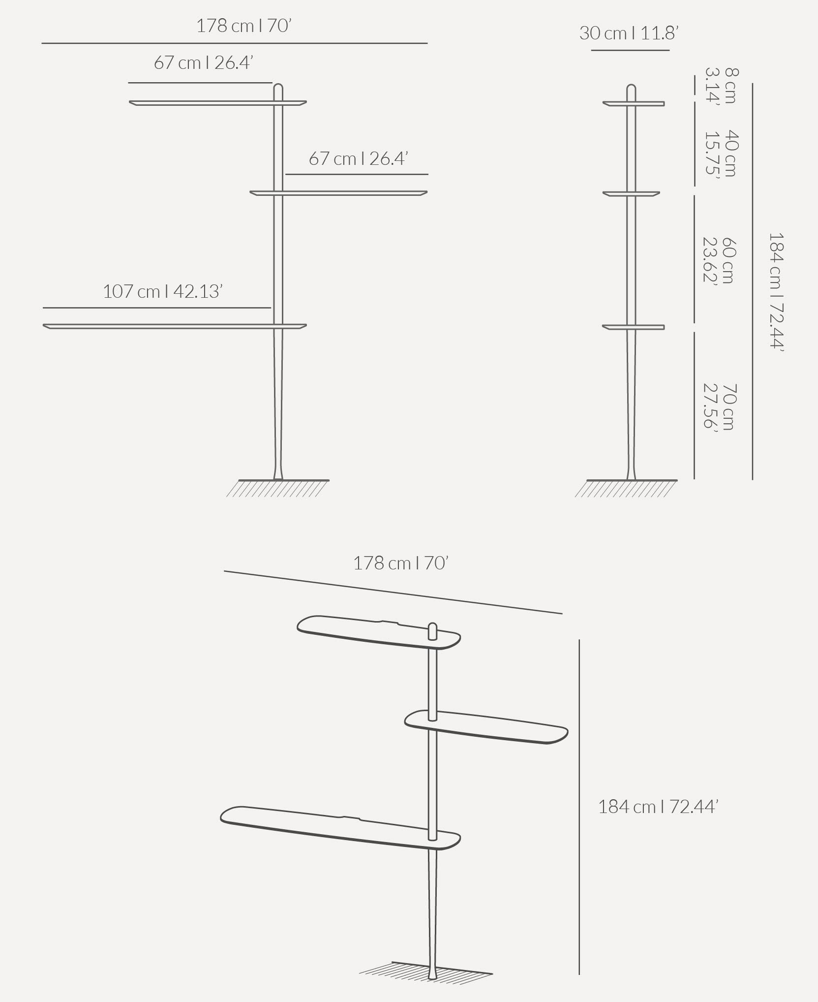 Moderný regál Unica v konfigurácii 04 je modulárny systém, ktorý umožňuje vytvoriť efektnú a funkčnú kompozíciu na stene. Štíhla konštrukcia založená na centrálnom vertikálnom prvku a asymetricky rozmiestnené police dodávajú celku ľahkosť, vďaka čomu tento designerský regál sa skvele hodí do súkromných a komerčných priestorov.