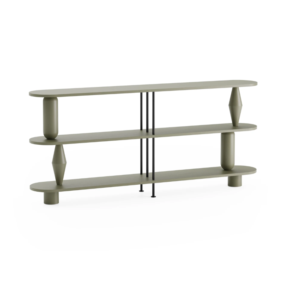 Regál Vazoo Duo je moderná interpretácia systému políc, kde sa estetika stretáva s funkčnosťou. Otočené, sochárske prvky pripomínajúce vázy dodávajú nábytku jedinečný charakter a stávajú sa jeho rozpoznávacím znakom. Vďaka použitiu ľahkých, priestranných detailov z práškovo lakovanej ocele si celok zachováva vizuálnu ľahkosť, skvele sa hodí do minimalistických aj eklektických interiérov.
