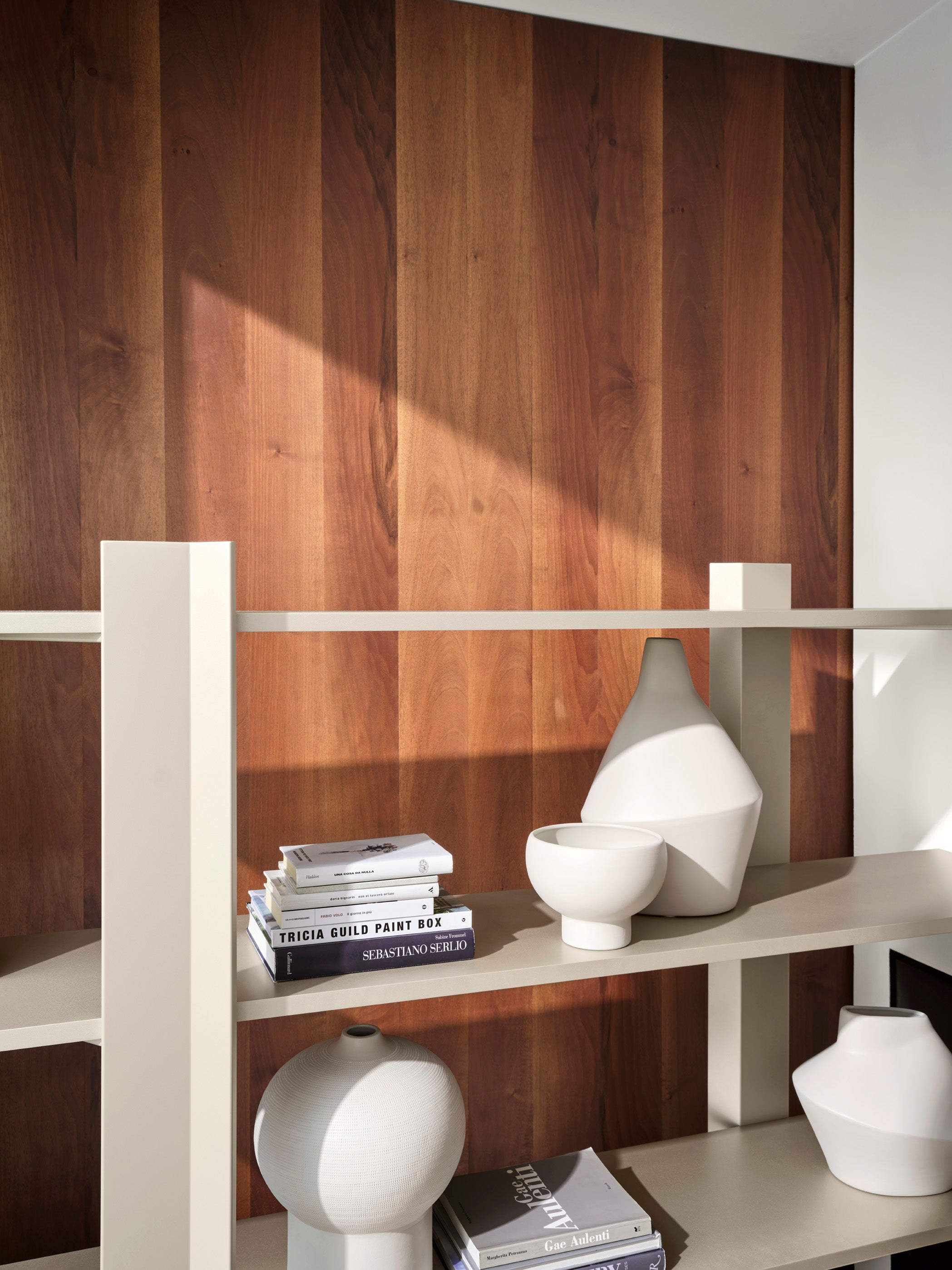 Regál Wu je voľne stojaci nábytok s všestranným využitím, ktorý môže byť umiestnený ako pri stene, tak aj v centrálnej časti miestnosti ako štýlový delič priestoru. Jednoduchá forma bola obohatená o precízne detaily, ako sú nepravidelne rozmiestnené podpery v tvare písmena V, ktoré dodávajú celku moderný a dynamický charakter.