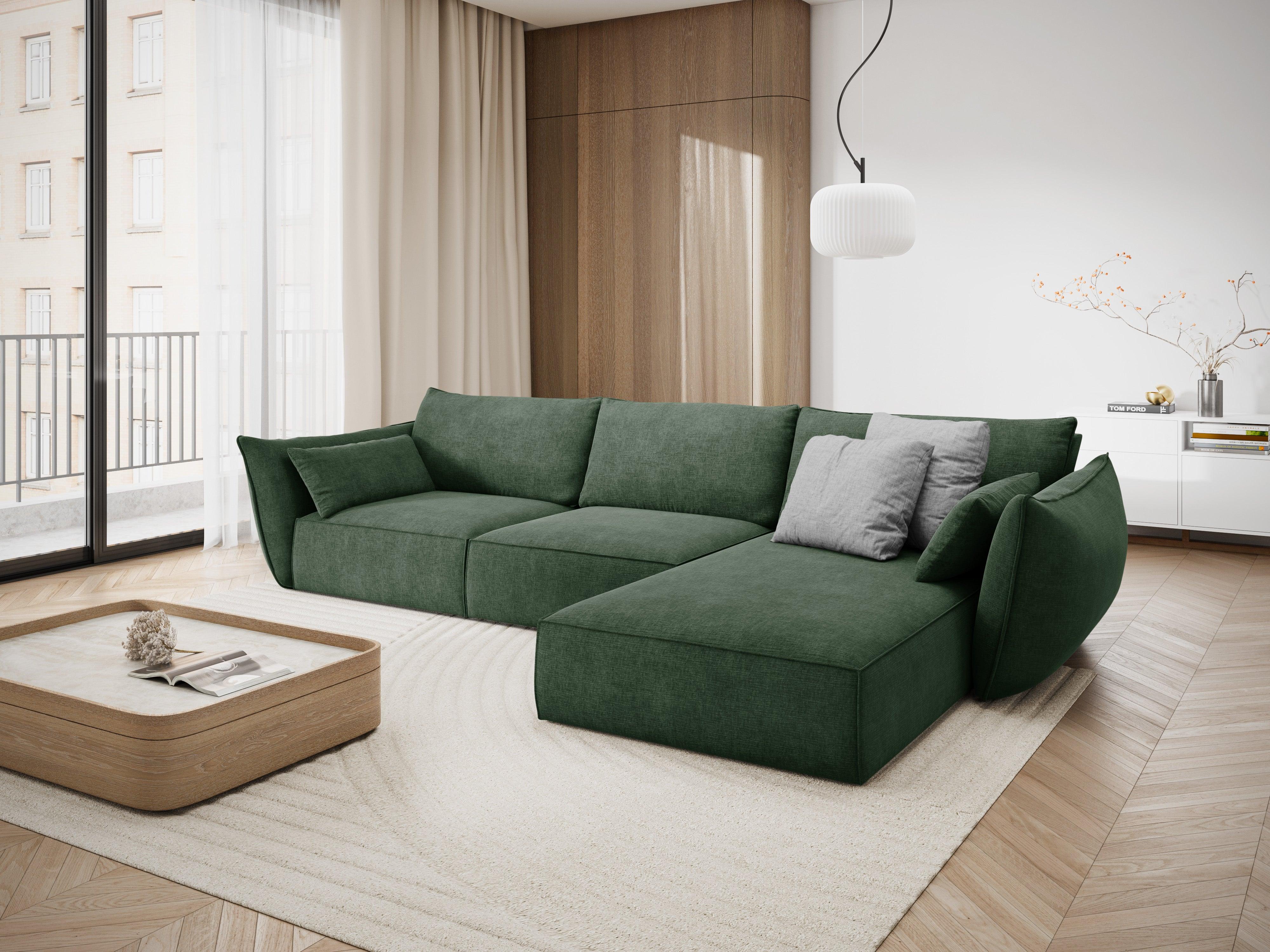 Rohová sedačka v šenilovej tkanine pravostranná pre 4 osoby VANDA fľašková zelená