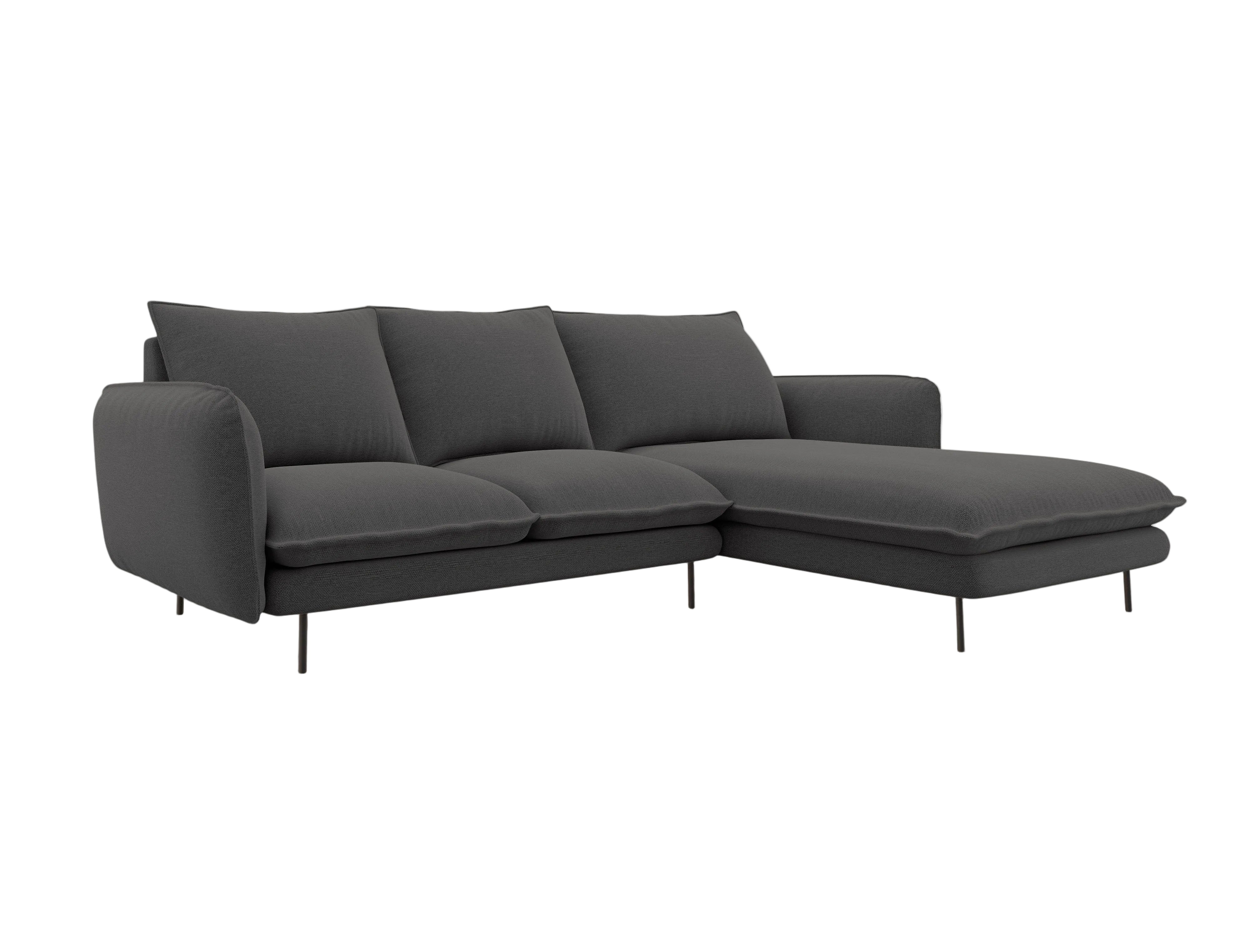 Pravostranný rohový gauč pre 5 osôb VIENNA tmavosivý šenil s čiernym podstavcom