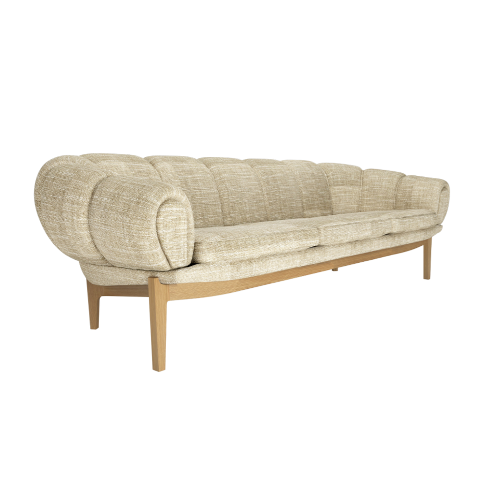 Sofa Croissant pre tri osoby je dizajnérska reinterpretácia klasického modelu Chesterfield od Illuma Wikkelsø. Jej originálna forma je inšpirovaná francúzskym rožkom, čo sa prejavilo vo výraznom, zaoblenom tvare sedadla a operadla. Tento projekt z roku 1962, ktorý zručne spája škandinávsku jednoduchosť s sochárskou formou, sa stal ikonou štýlu a dnes sa vracia v osvieženej verzii, dokonale prispôsobenej súčasným štandardom pohodlia a estetiky.