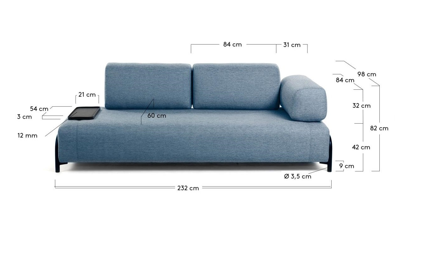 Modulárna 3-miestna pohovka s malým podnosom COMPO modrá