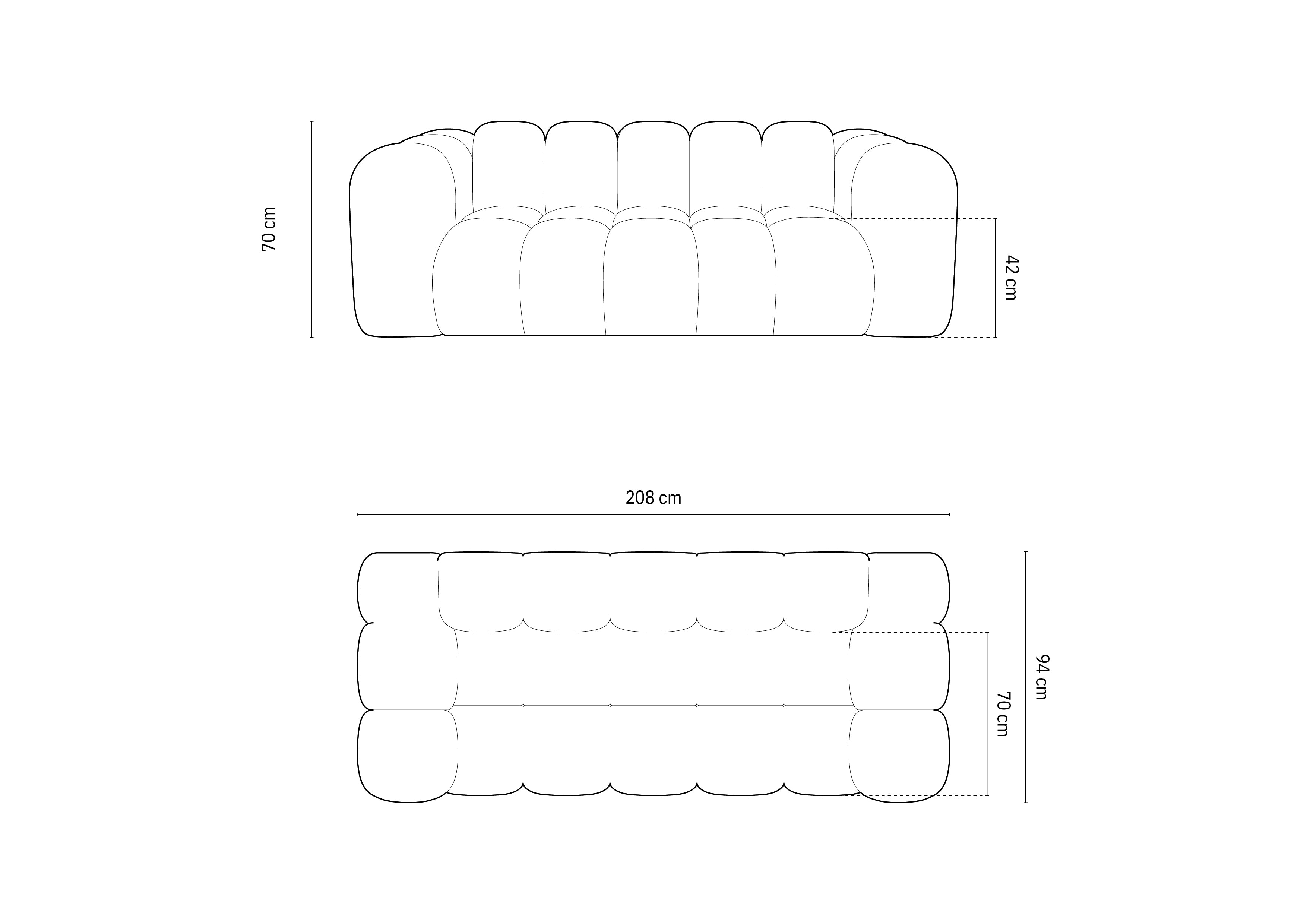 Pohovka nielenže prezentuje atraktívny vzhľad, ale tiež vyžaruje útulný charakter. Zamatová tkanina, charakterizujúca sa mimoriadnou trvácnosťou a mäkkosťou, dodáva celku luxusné dokončenie. Nábytok z limitovanej kolekcie Halley predstavuje efektný súbor na sedenie, prinášajúci do interiéru jemný akcent nadčasovej elegancie.