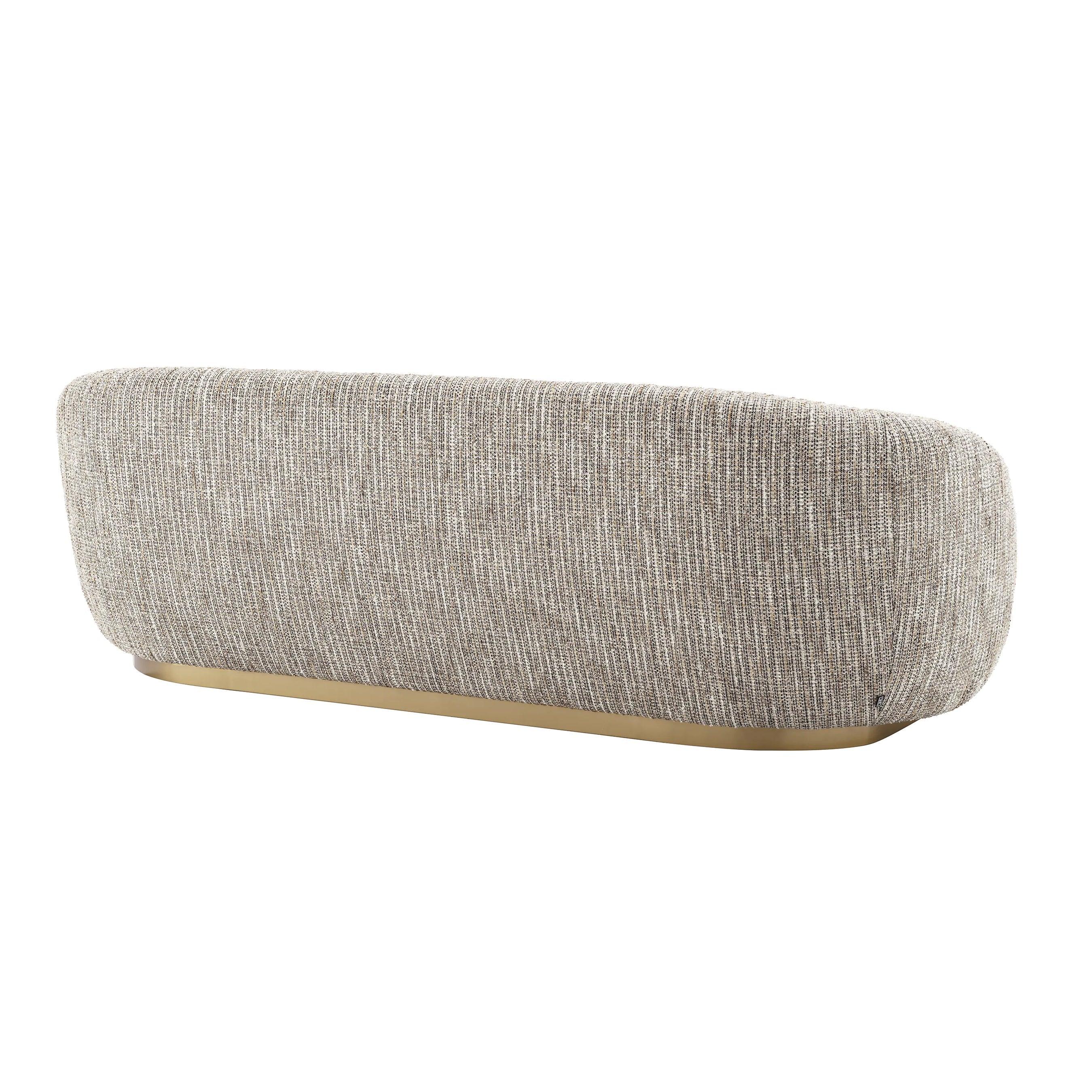 Bežová pohovka Brice je vyrobená z kvalitnej krémovej bouclé tkaniny, ktorá jej dodáva nezameniteľný charakter. Táto mäkká a jemná tkanina poskytuje príjemné pocity počas relaxácie a zároveň dodáva pohovke výnimočný, luxusný vzhľad. Základňa pohovky je vyrobená z brúseného mosadze, čo jej pridáva eleganciu a pevnosť.