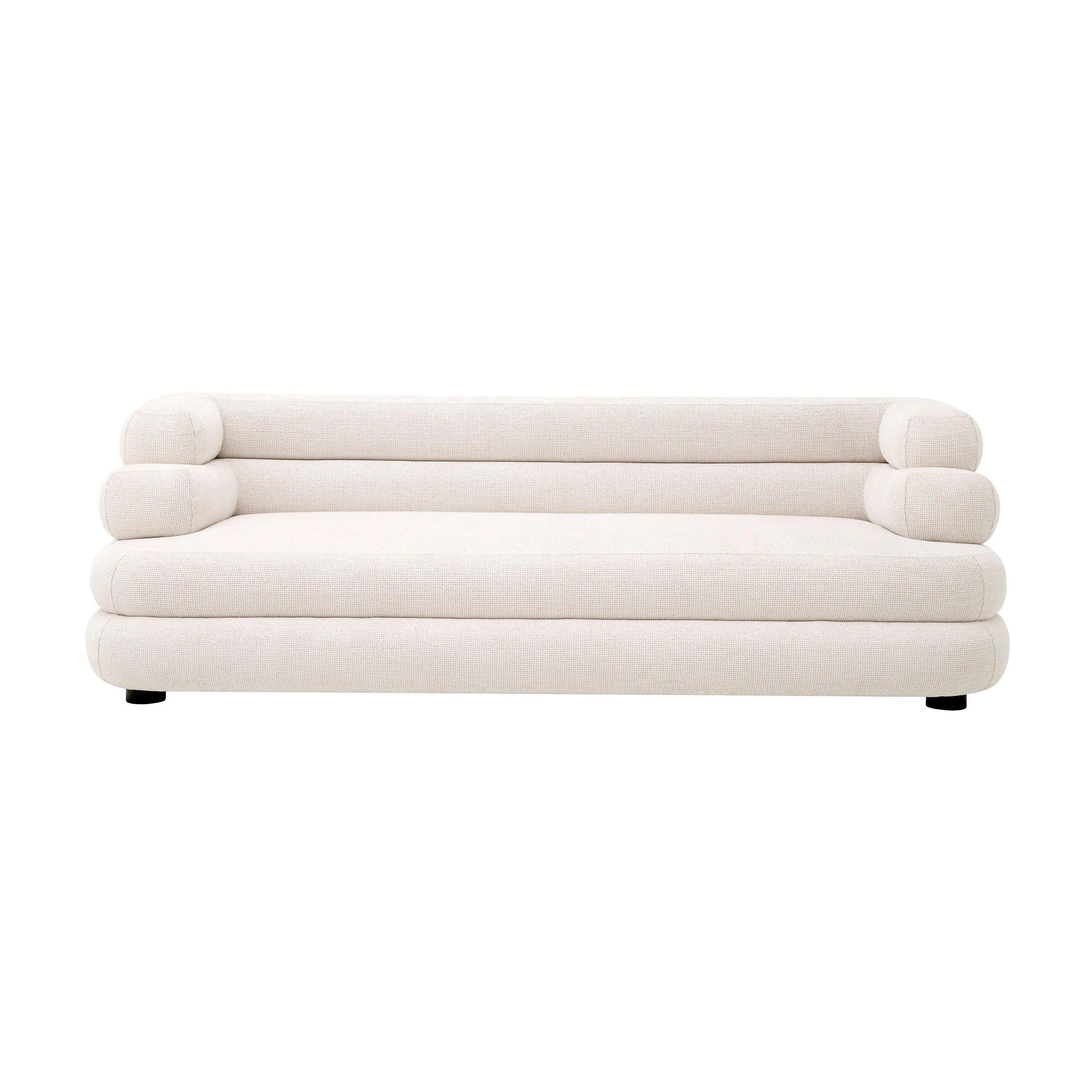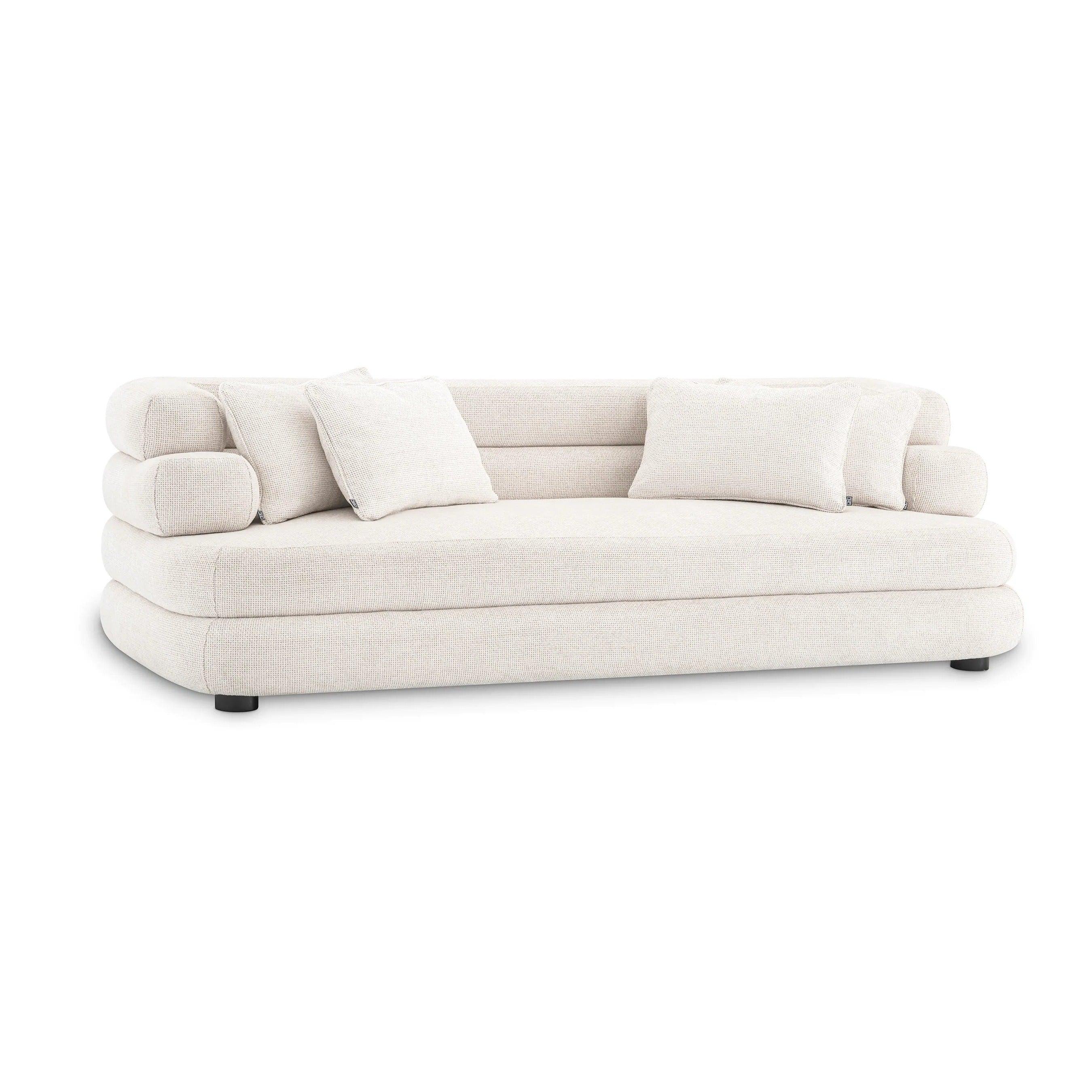 Sofa Malaga v svetlej béžovej farbe s čiernymi nohami je výrazom výnimočnej elegancie a štýlu. Jej jedinečný tvar a pohodlné, rozptýlené vankúše robia z nej mimoriadne komfortný kus nábytku, ktorý sa hodí do každého typu interiéru.