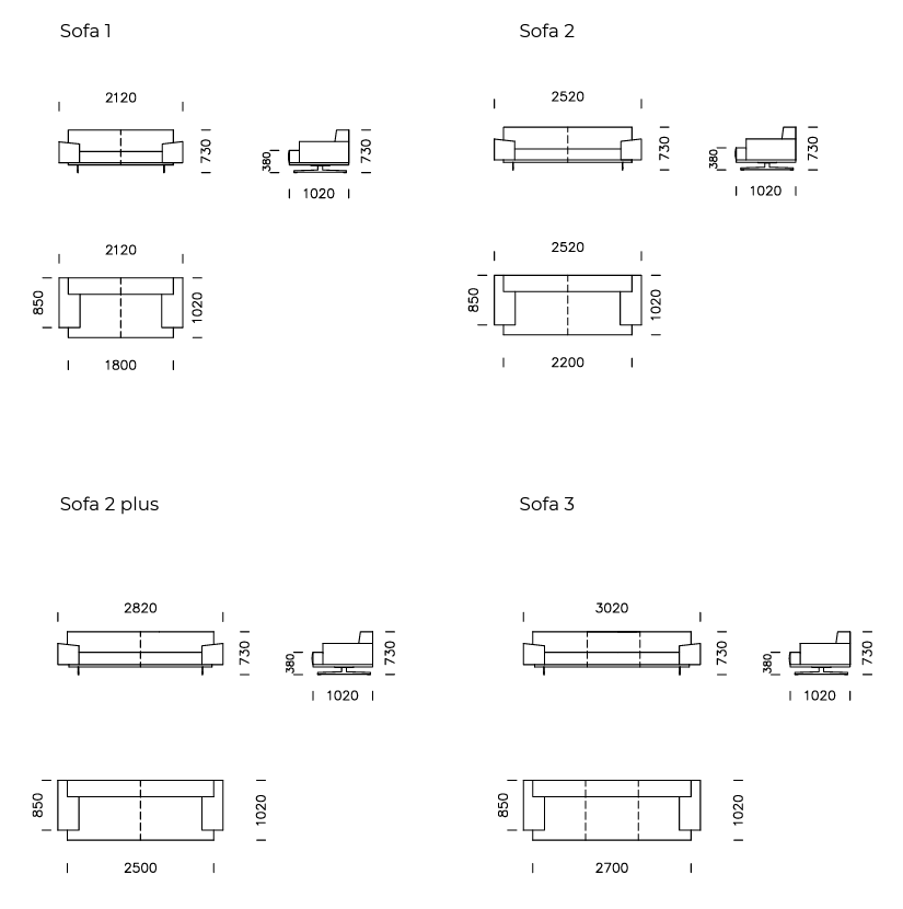Szerokość siedziska: 180 / 220 / 250 / 270