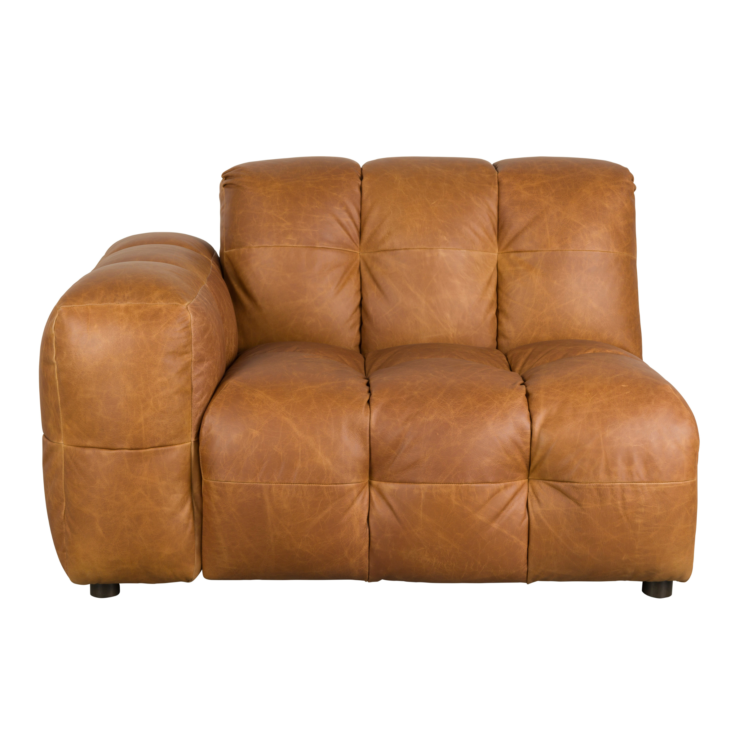 Modulárna pohovka HACKMAN - koncový prvok ľavý, kožený v odtieni koňaku