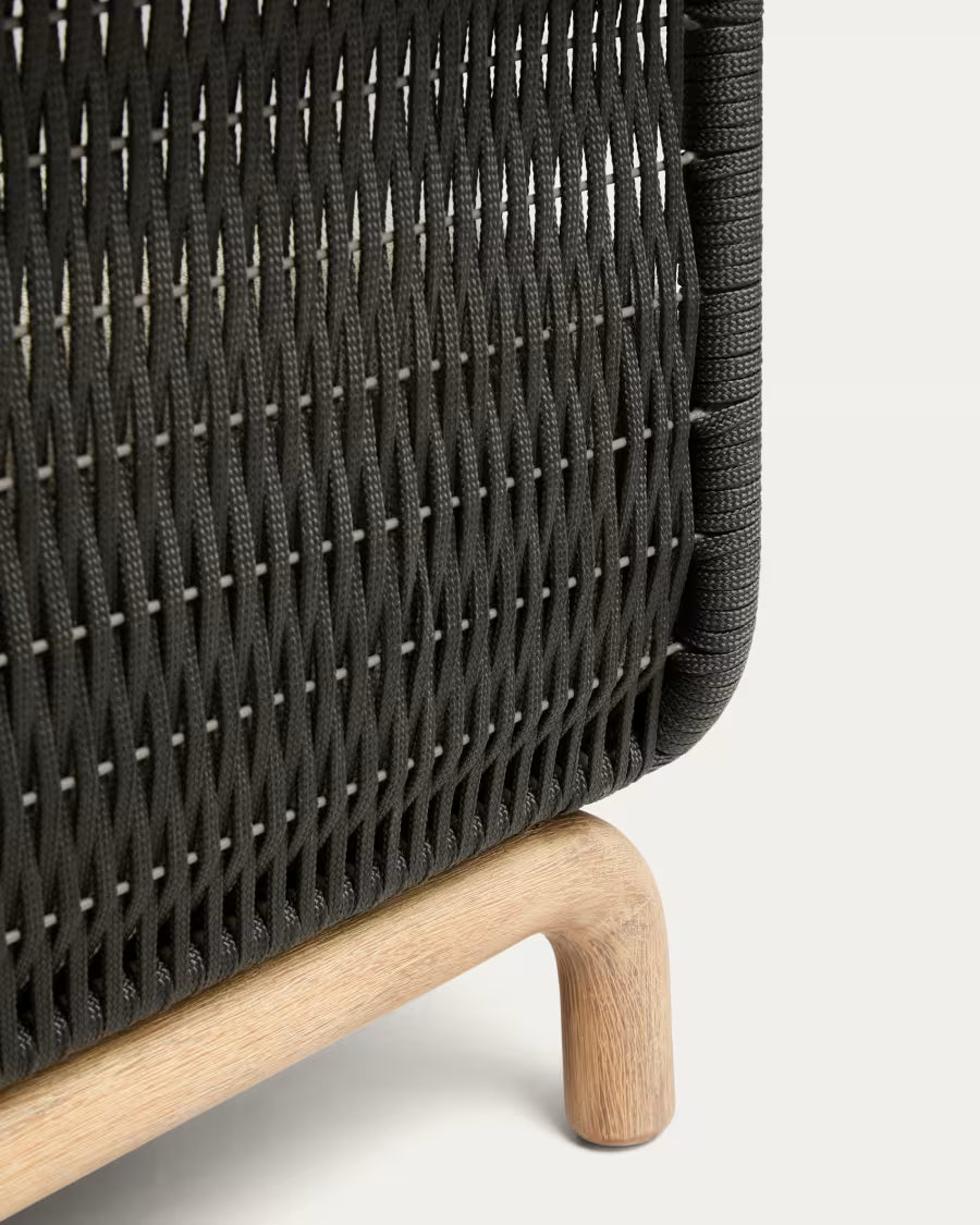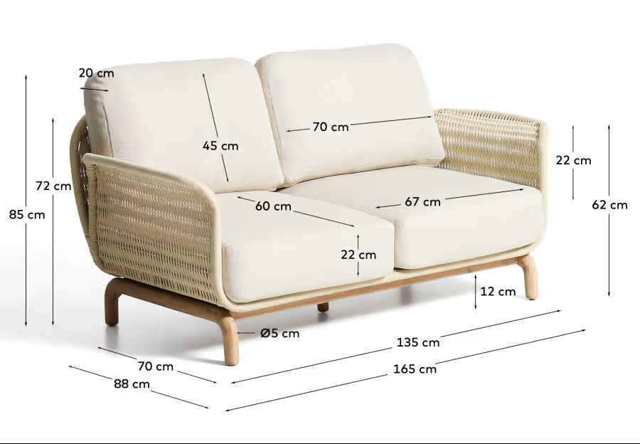 Sedadlo vyrobené z ručne pletenej lanovej tkaniny odolnej voči UV žiareniu a mäkké vankúše so snímateľnými poťahmi zabezpečujú, že záhradná pohovka ponúka vysoký komfort každodenného používania. Trvanlivé materiály a pevné spracovanie zaručujú, že záhradná pohovka s vankúšmi si zachová svoj estetický vzhľad dlhý čas, aj pri intenzívnom používaní. Je to ideálny výber pre tých, ktorí si cenia funkčnosť, pohodlie a prirodzený štýl v usporiadaní oddychového priestoru.