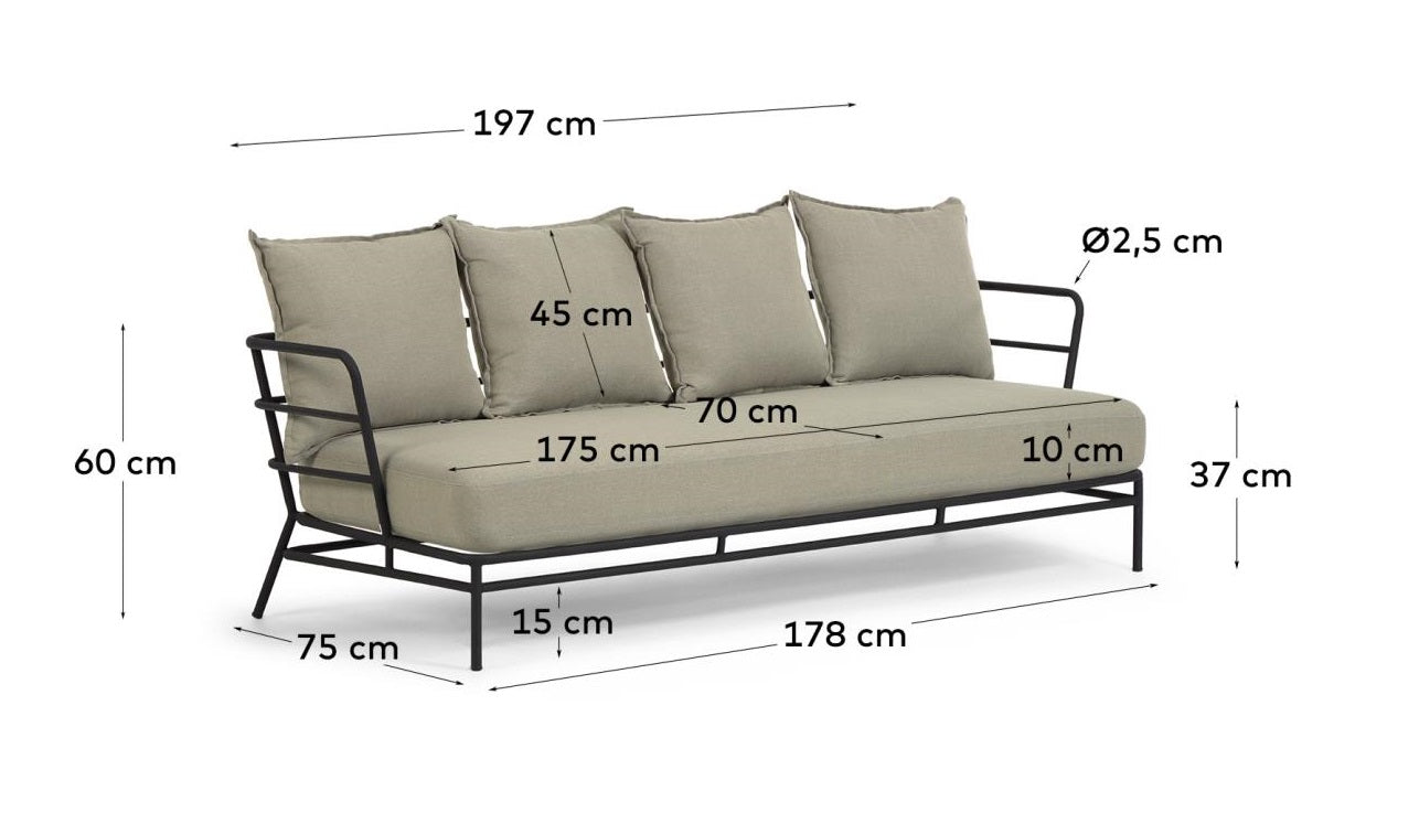 Ďalšou výhodou sú odnímateľné vankúše, ktoré nielenže pridávajú sedačke eleganciu, ale aj uľahčujú jej udržiavanie v bezchybnej čistote. Béžová farba sedačky harmonizuje s okolím, pridávajúc mu útulnosť a jemné čaro. Trojsedák na vonkajšie použitie Mareluz nie je len nábytok na sedenie – je to voľba pre tých, ktorí si cenia spojenie komfortu, štýlu a trvácnosti. Doprajte si relaxáciu v najvyššom štýle a obklopte sa komfortom vďaka sedačke Mareluz.