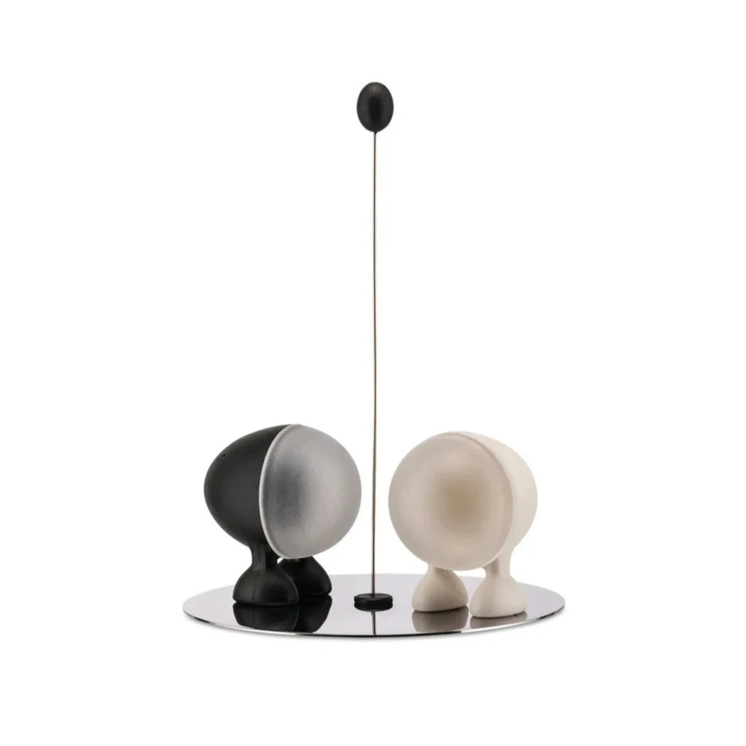 Soľnička a korenička Lilliput je rozkošná súprava, ktorá prináša kúsok humoru a radosti na váš stôl. Vďaka svojej neobvyklej forme a zábavnému dizajnu priťahuje pozornosť a vyvoláva úsmev. Soľnička a korenička v tvare postavičiek, ktoré balansujú na oceľovom podstavci, sú zároveň funkčné a dekoratívne.