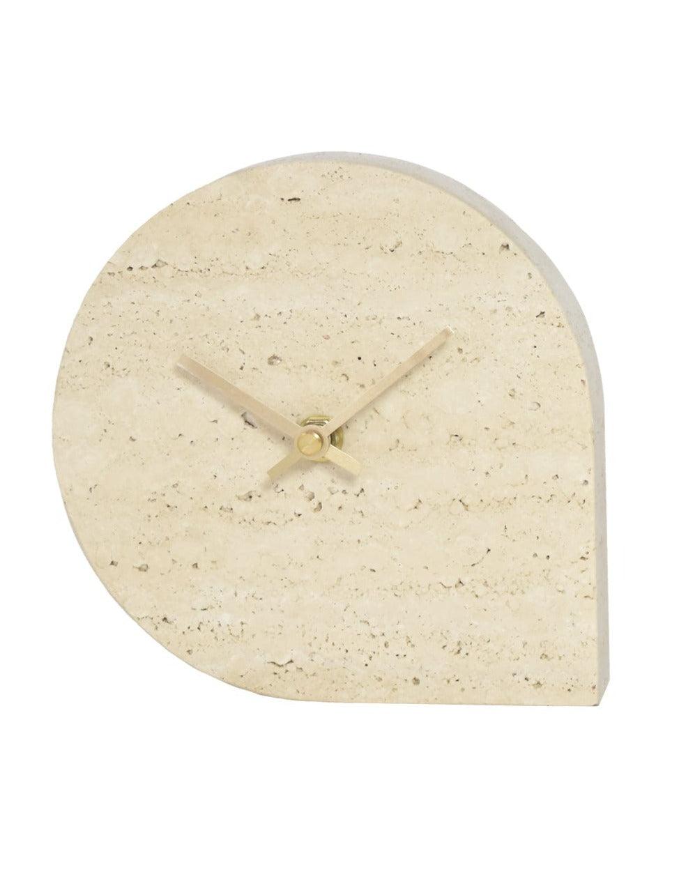 Tvár hodín okamžite pridá kvapku ikonického dizajnu do každej miestnosti. Stilla ukazuje čas elegantnou, mosadznou ručičkou na pozadí mramorového ciferníka. Dostupné sú v rôznych odtieňoch mramoru, zatiaľ čo béžové hodiny Stilla v travertíne spájajú sochársku a organickú formu. Travertín je prírodný materiál, ktorý vďaka formovaniu v jaskyniach stalaktitov má neobyčajný vzhľad.