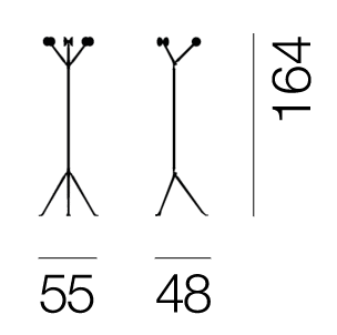 Podlahový vešiak od návrhárov Ronana a Erwana Bouroullecovcov je elegantné a funkčné riešenie na uskladnenie vrchného oblečenia. Vyrobený z kovu a dreva, spája pevnú konštrukciu s precíznou estetikou. Tri paralelné oceľové rúry spojené hore a dole tvoria stabilný, trojuholníkový základ. Každá z rúrok má výstupky, ktoré umožňujú zavesenie oblečenia, a konce háčikov sú otočené, čo zabraňuje skĺzavaniu odevu.