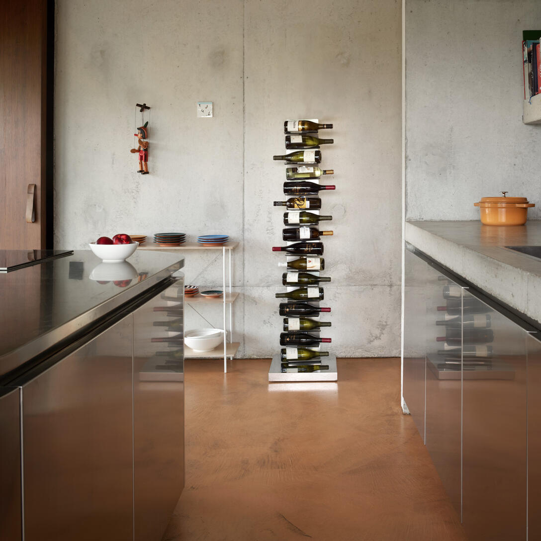 Dostupný v dvoch výškach a rôznych farebných variantoch – vrátane matnej čiernej, lesklej bielej, cortenovej a nerezovej ocele – Ptolomeo Vino sa dokonale hodí ako do moderných domácich interiérov, tak aj do komerčných priestorov: reštaurácií, vinární či hotelových lobby. Protišmykové elastické pásky zabezpečujú každú fľašu, podporujúc jej správne uskladnenie a proces zrenia.