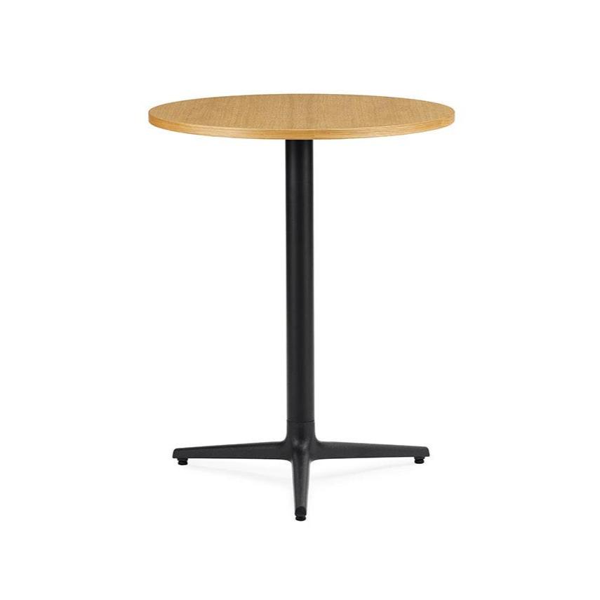 Kavárenský stôl okrúhly ALLEZ s drevenou doskou a čiernou základňou
