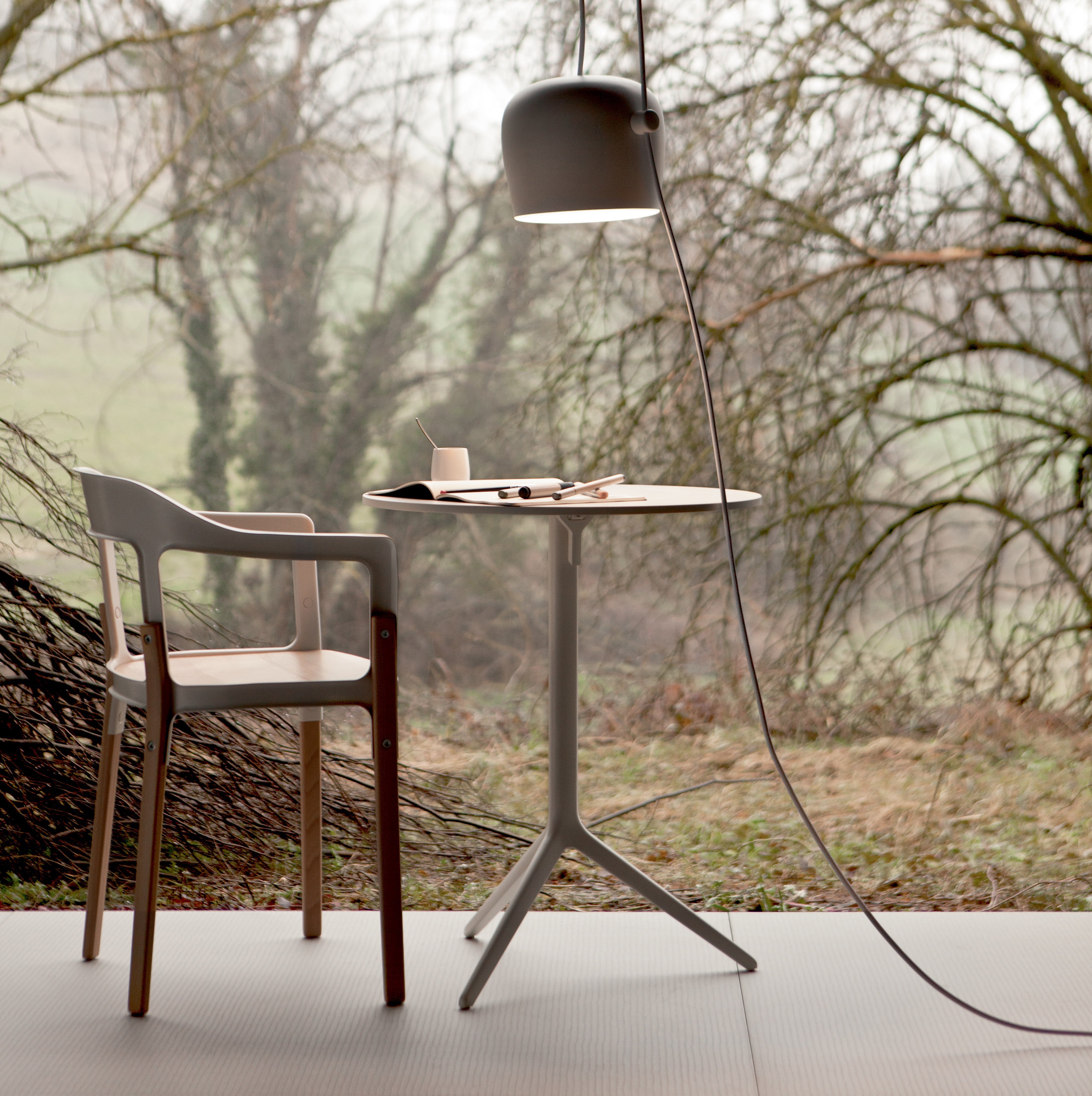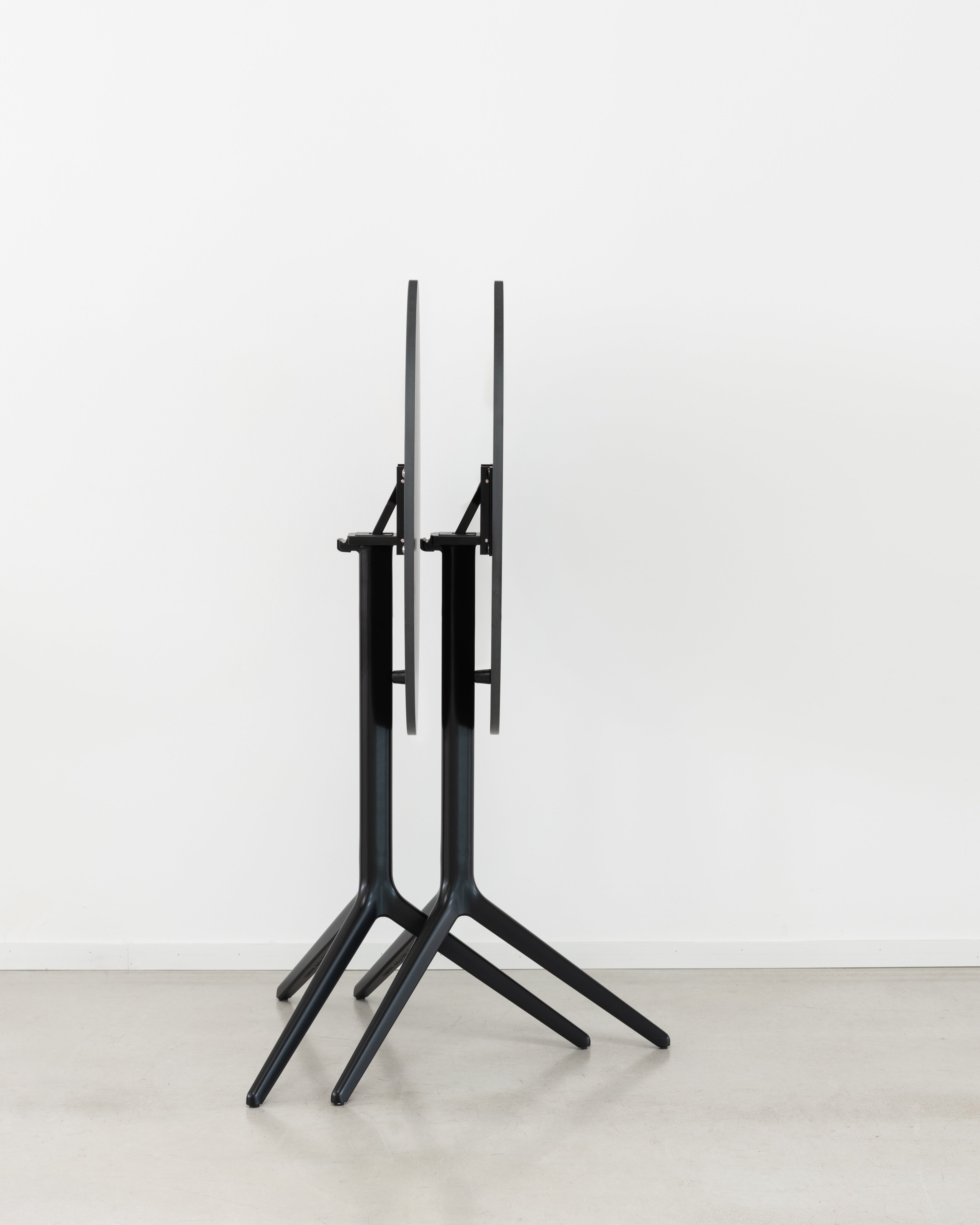 Štíhla, odlievaná hliníková základňa a okrúhly stôl tvoria súvislý celok, ktorého kľúčovou vlastnosťou je funkcia skladania. Vďaka nej stôl Central sa osvedčí v menších miestnostiach, kaviarňach alebo multifunkčných priestoroch, kde záleží na jednoduchosti uskladnenia a mobilite – bez kompromisu na estetike.