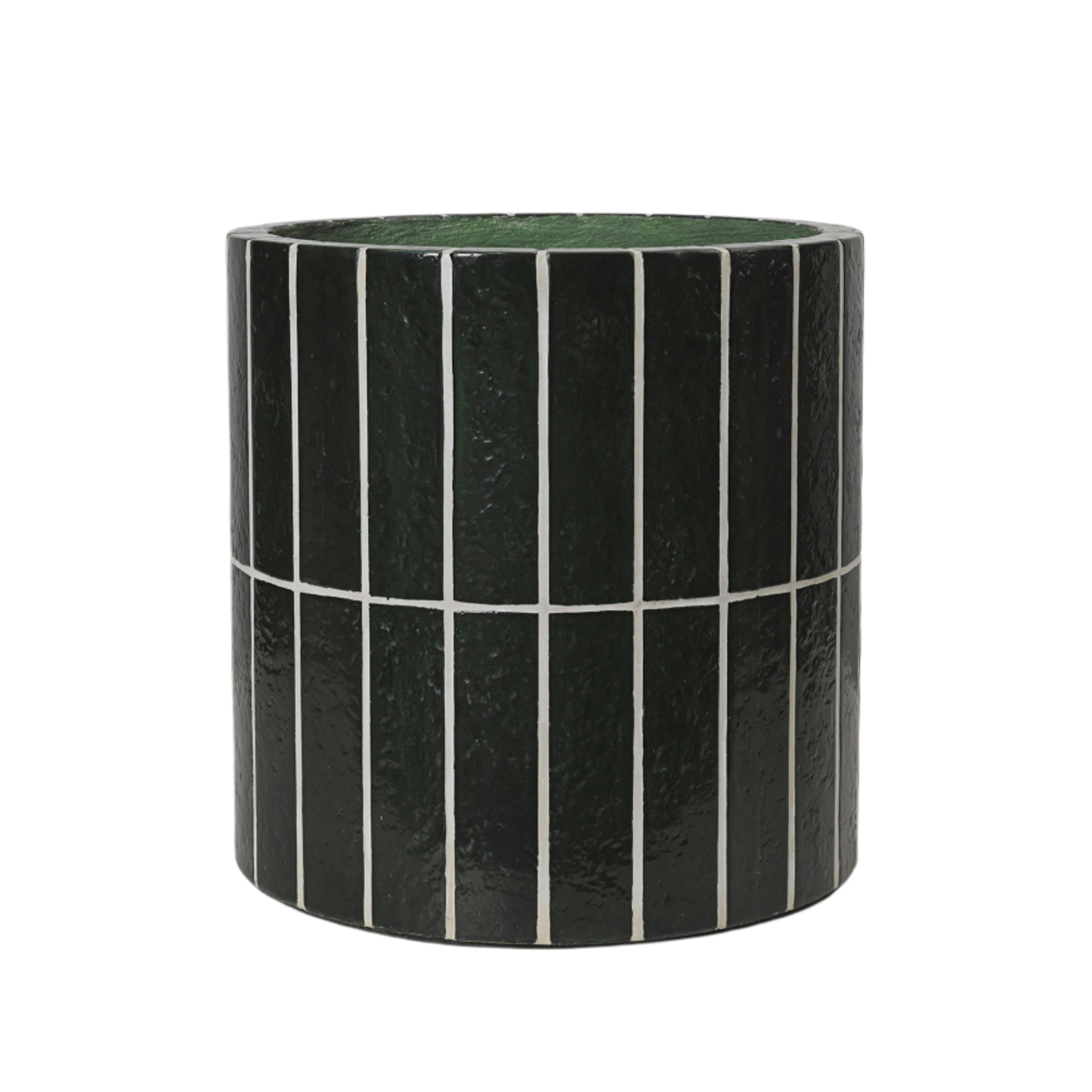 Kvetináč PILLAR tmavozelený betón s bielym