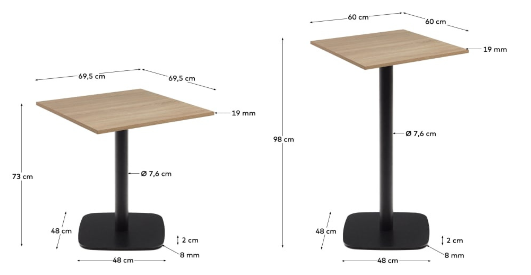 Kombinácia dubového povrchu štvorcovej dosky s čiernou kovovou základňou dodáva stolu Dina štýlový vzhľad, ktorý sa hodí ako do moderných, tak aj do klasických interiérov, pričom im dodáva jedinečný charakter.