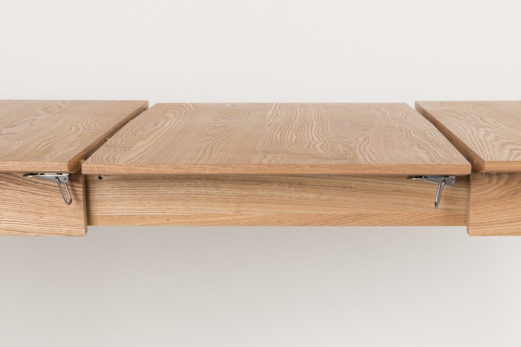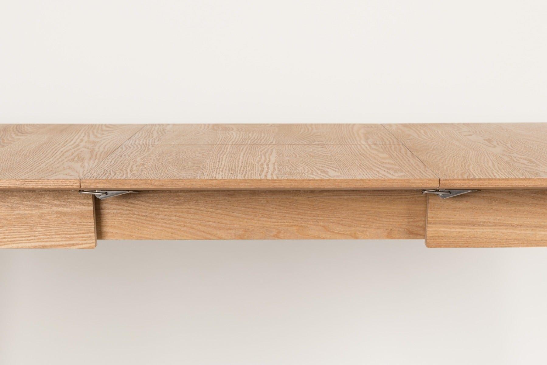 Jaseňový stôl Glimps je skvelé riešenie pre každé bývanie, kde počas bežných jedál nie je potrebné veľa miesta, ale občas sa vyskytnú príležitosti, keď je to potrebné. To sa dá ľahko dosiahnuť možnosťou rozloženia.
