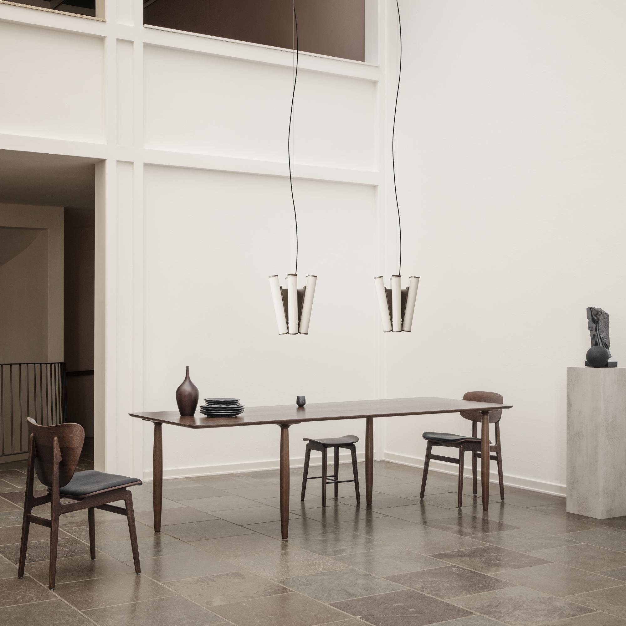 Stôl Oku je interpretáciou japonského slova označujúceho dub „Ōku”. Vrchná doska stola Oku je vyrobená z dubového dyhy s zaoblenými hranami, čo pridáva rafinovaný detail veľkej ploche. Nohy z točených sekcií dubového dreva sú rozmiestnené sporadicky, aby vytvorili ilúziu plávajúcej dosky, pričom zároveň pridávajú sochárske detaily k stolu.