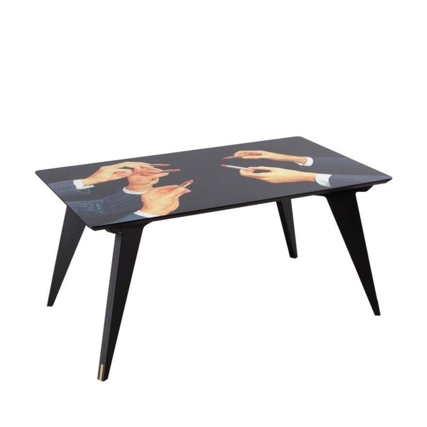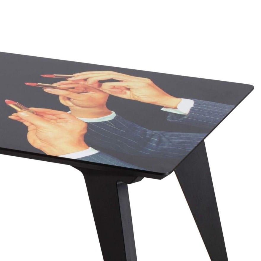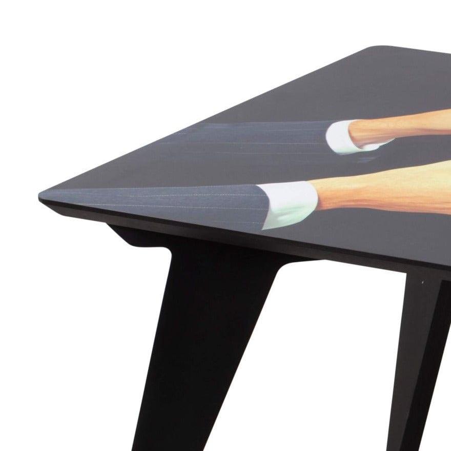 Designerský stôl v štýle 70. rokov, ktorý otvorí dvere do iného, surrealistického rozmeru a dodá interiéru jedinečný charakter. Šikmé nohy a mierne kontroverzný koláž na doske vytvárajú originálne umelecké dielo. Bolvyrobený v Taliansku, čo zaručuje vysokú kvalitu.