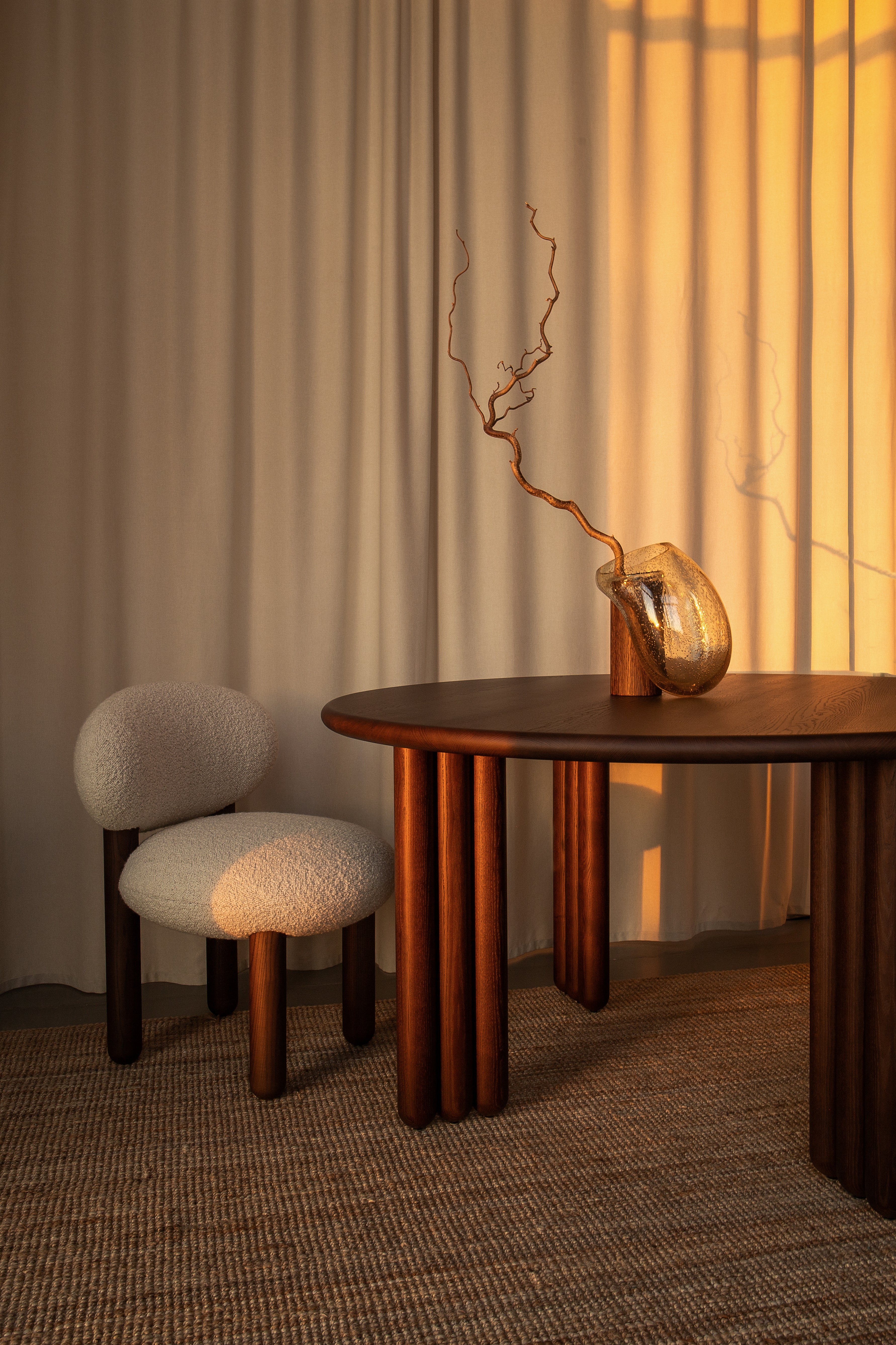 Vďaka subtílnemu dizajnu, okrúhly stôl Flock sa dokonale hodí do moderných aj klasických interiérov. Teplá farebnosť jaseňového dreva pridáva útulnosť, zatiaľ čo jednoduchá forma zabezpečuje elegantný vzhľad. Jedálenský stôl Flock je nábytok, ktorý prinesie do vášho domova pohodlie a štýl.