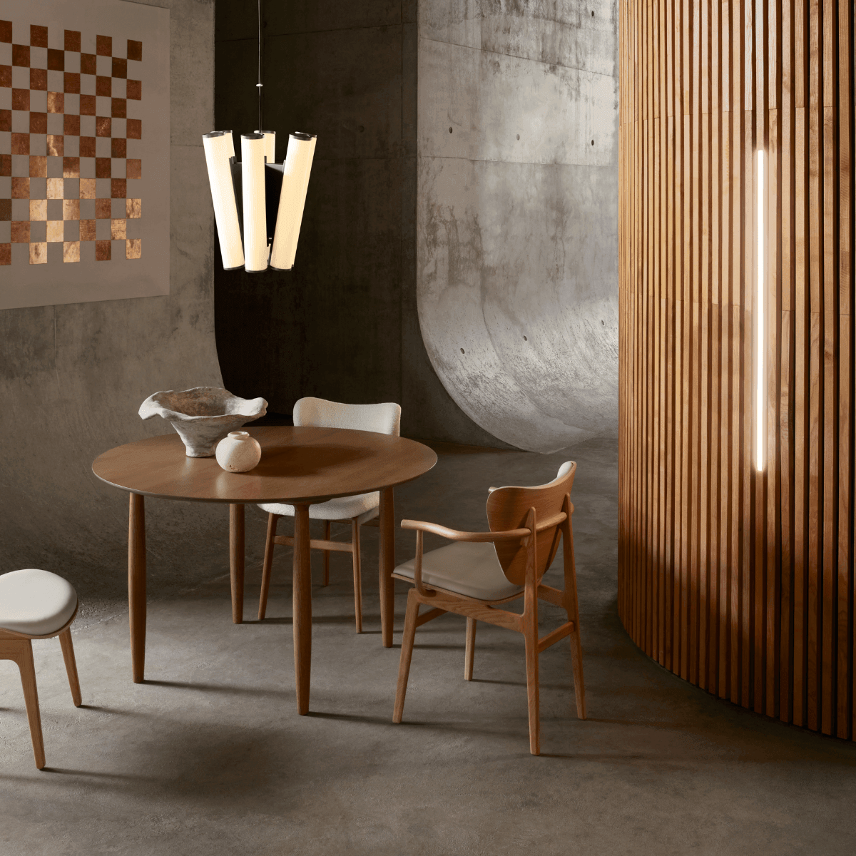 Stôl Oku je interpretáciou japonského slova označujúceho dub „Ōku”. Vrchná doska stola Oku je vyrobená z dubového dyhy s zaoblenými hranami, čo pridáva rafinovaný detail veľkej ploche. Nohy z točených sekcií dubového dreva sú rozmiestnené sporadicky, aby vytvorili ilúziu plávajúcej dosky, pričom zároveň pridávajú sochárske detaily k stolu.
