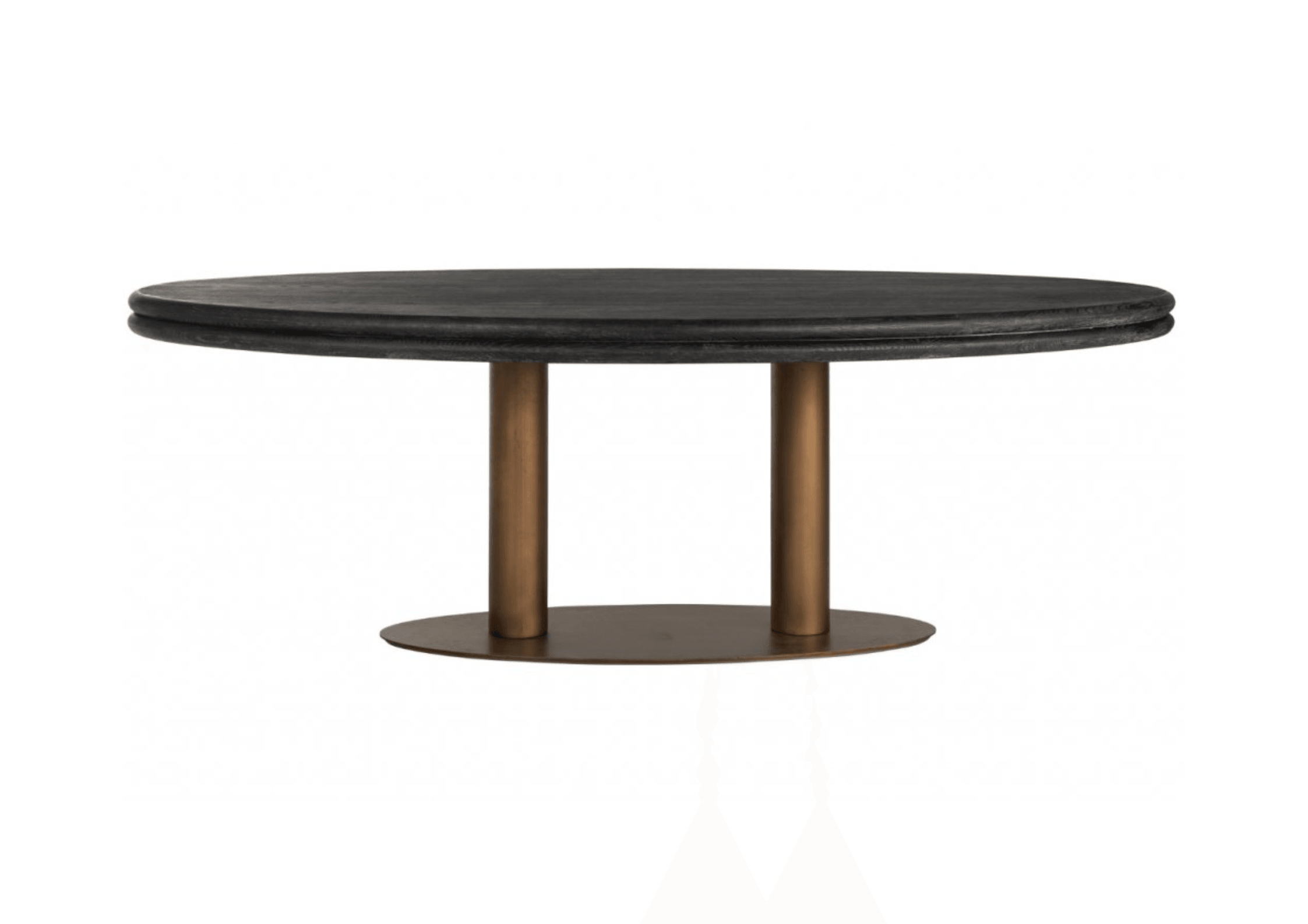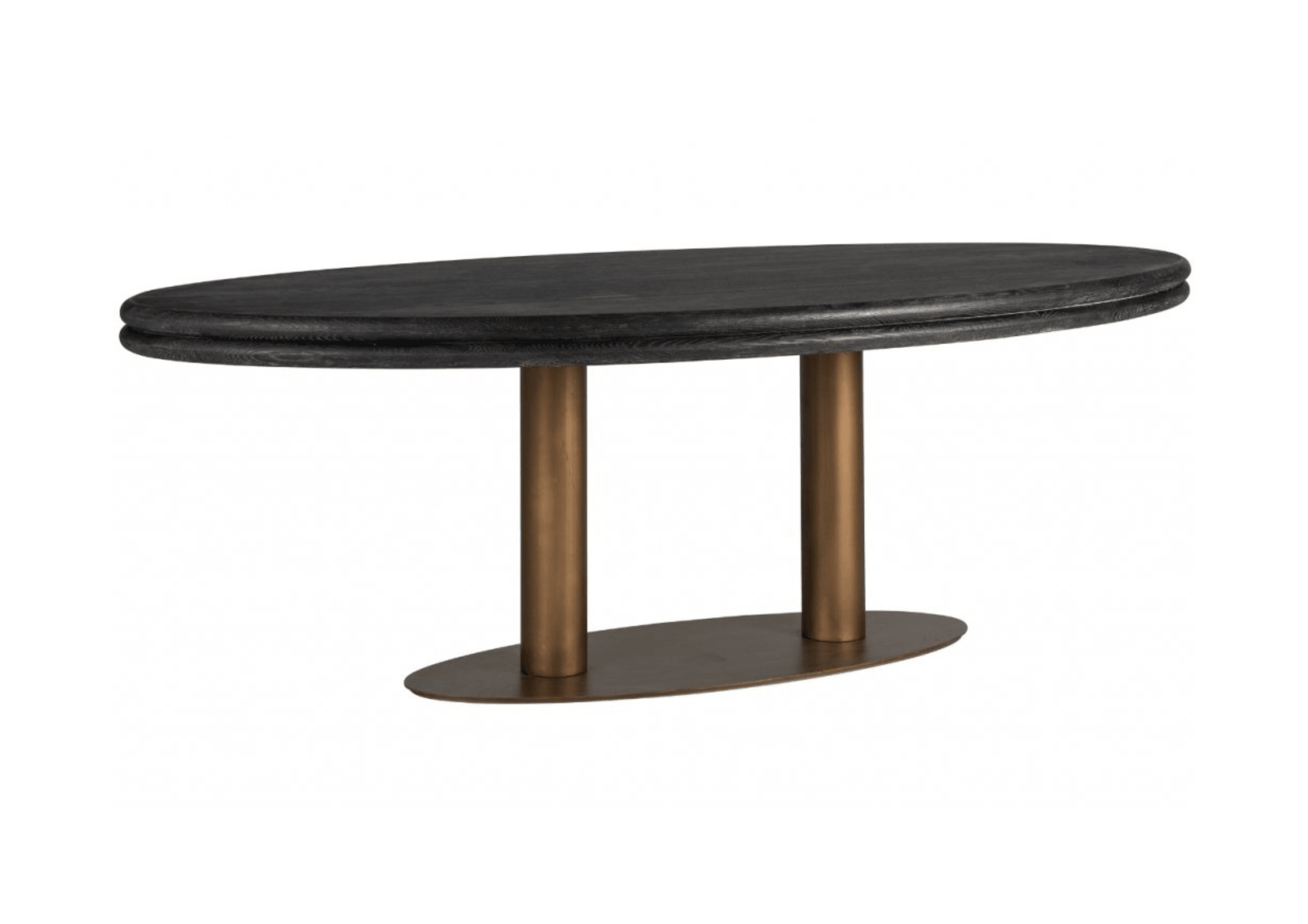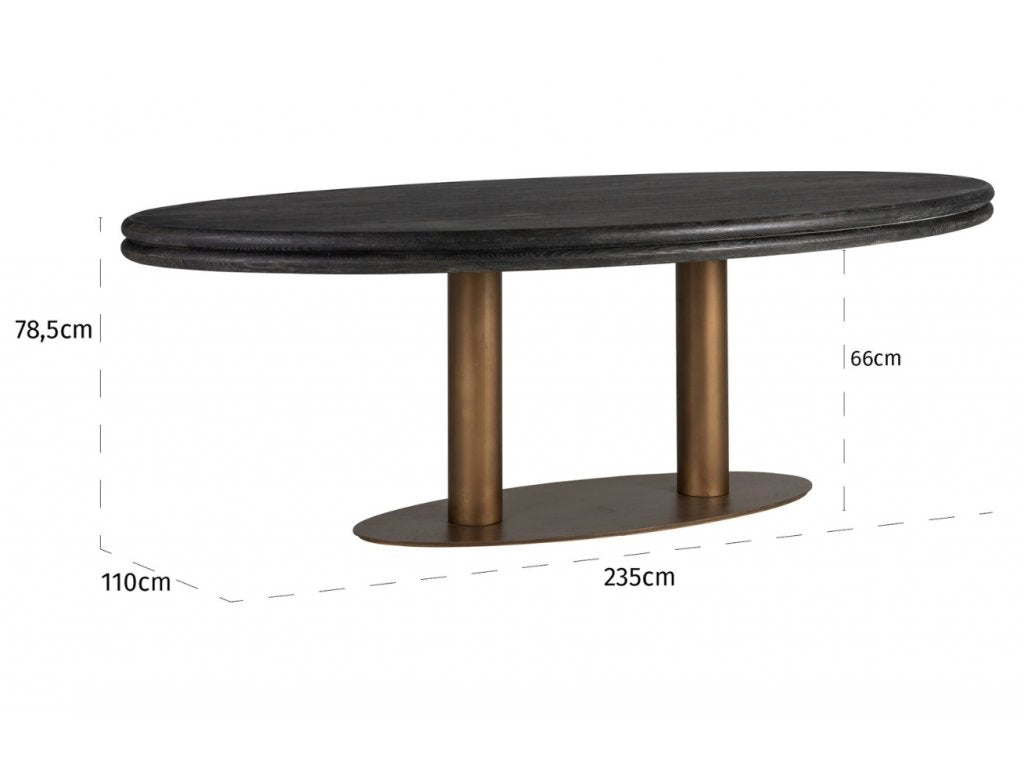 Okrúhly stôl Macaron je kombináciou výnimočnej estetiky a funkčnosti. Kovová konštrukcia v odtieni patinovanej mosadze dodáva stolu jedinečný charakter, zatiaľ čo tmavohnedé vyhotovenie mu dodáva eleganciu a rafinovaný vzhľad. Dubová doska pridáva prirodzené teplo a pôvab, čím vytvára kontrast s kovovým prvkom.