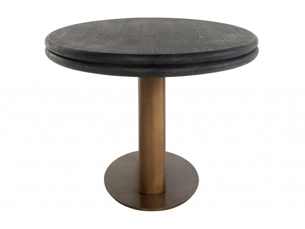 Okrúhly jedálenský stôl Macaron v odtieňoch tmavohnedej a mosadze je vynikajúcou voľbou pre tých, ktorí hľadajú exkluzívny a elegantný kus nábytku do svojej jedálne. Tento pôsobivý jedálenský stôl bol vytvorený s použitím kovu v odtieni patinovanej mosadze a tmavohnedého povrchu, čím vytvára harmonickú a efektnú kompozíciu. Doska stola je zdobená krásnym dubovým drevom, ktoré mu dodáva prirodzenú krásu.