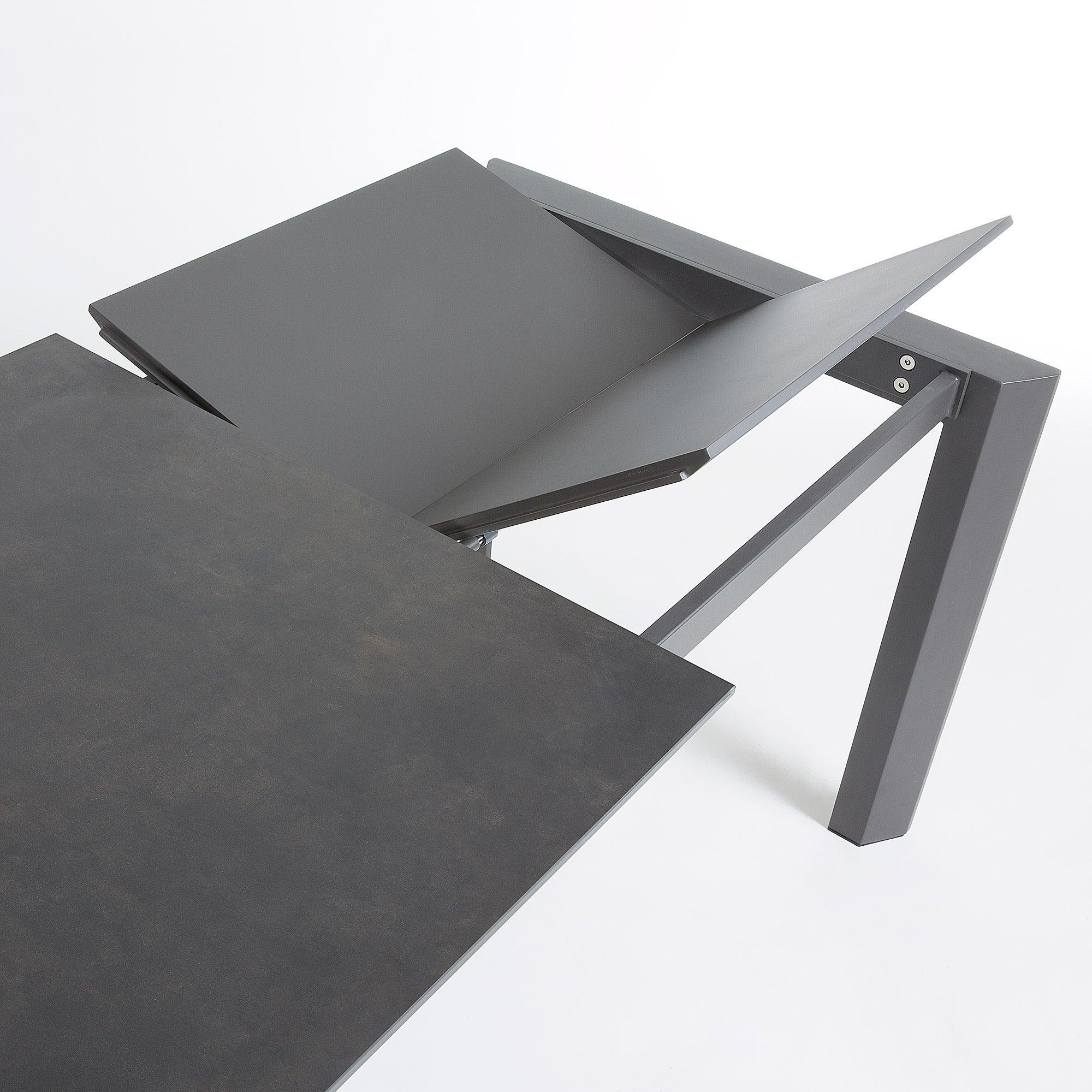 Rozkladací stôl AXIS čierna keramika s tmavosivým podstavcom