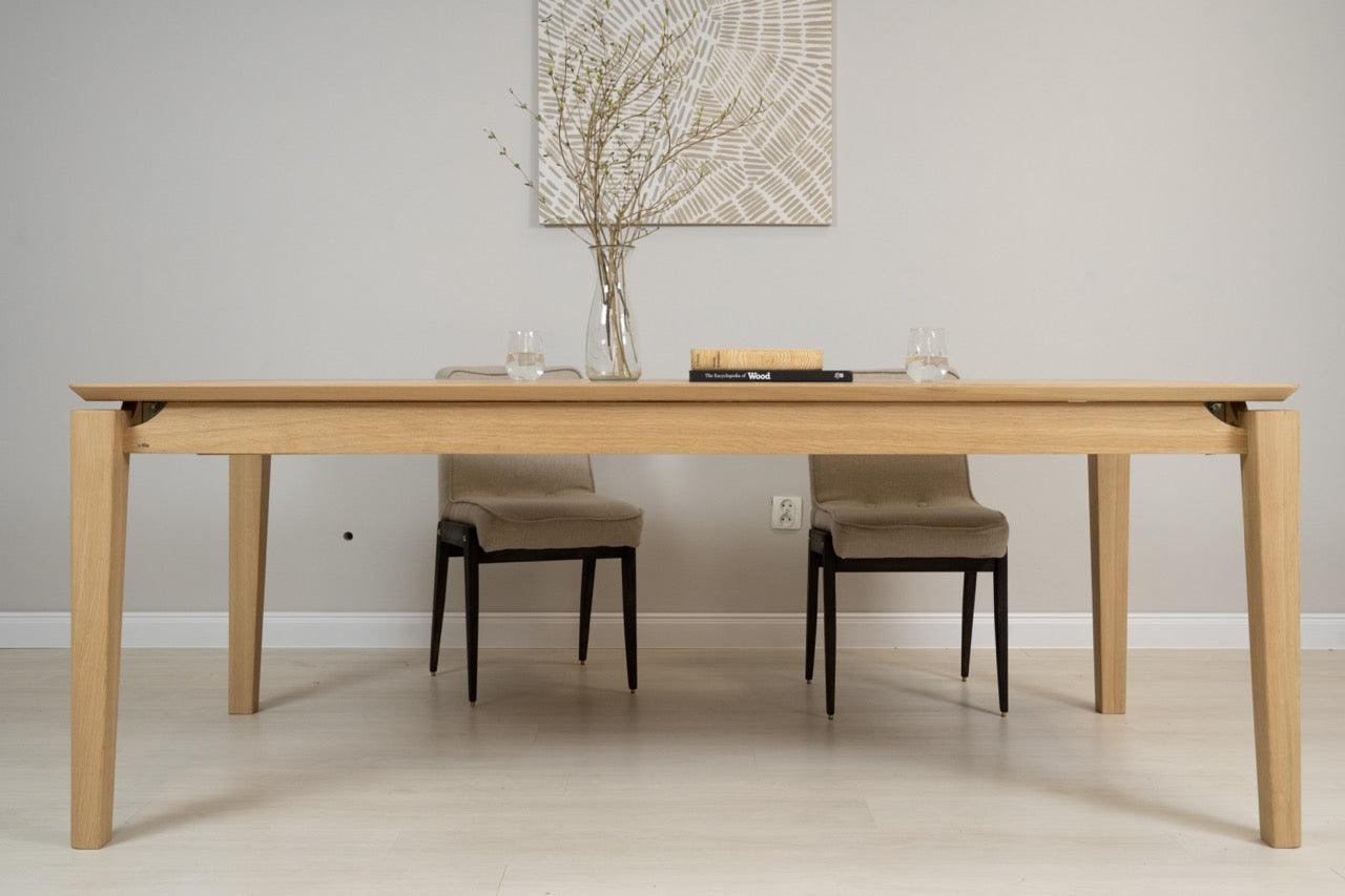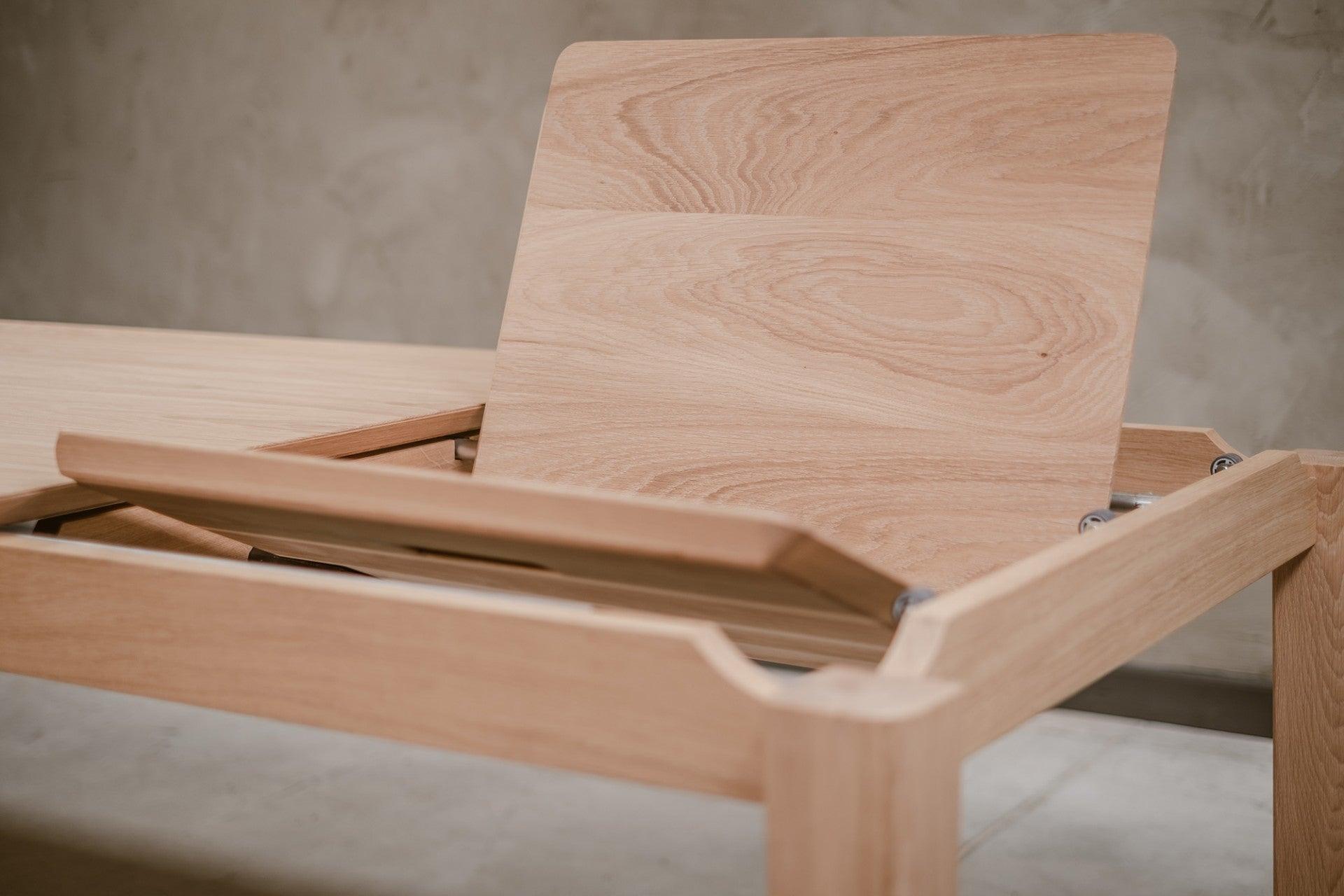Vyrobený z masívneho dreva, s viditeľným prírodným vzorom, sa stáva centrálnym bodom domova, pozývajúc na spoločné trávenie času. Okrem nadčasového dizajnu a vynikajúcej kvality materiálov, stôl Chamfer bol navrhnutý tak, aby plnil viacero funkcií. Pomocou jedného pohybu je možné výrazne zväčšiť jeho dosku, čo umožňuje oslavovať spoločné chvíle vo väčšej spoločnosti.
