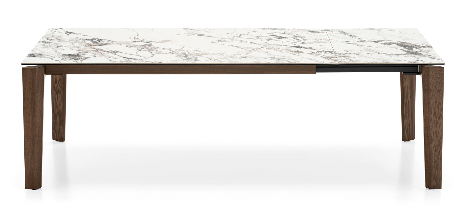 Vrchná doska stola Dogma je rozťahovacia, a po rozložení sa nohy stola posúvajú súčasne pozdĺž jeho dĺžky, čo zabezpečuje stabilitu a pohodlie. Mechanizmus rozkladania so systémom asistovaného otvárania uľahčuje každodenné používanie, umožňujúc rýchle prispôsobenie stola pre väčší počet hostí. Je to ideálny výber do priestranných jedální, kde záleží na funkčnosti aj nadčasovom dizajne.